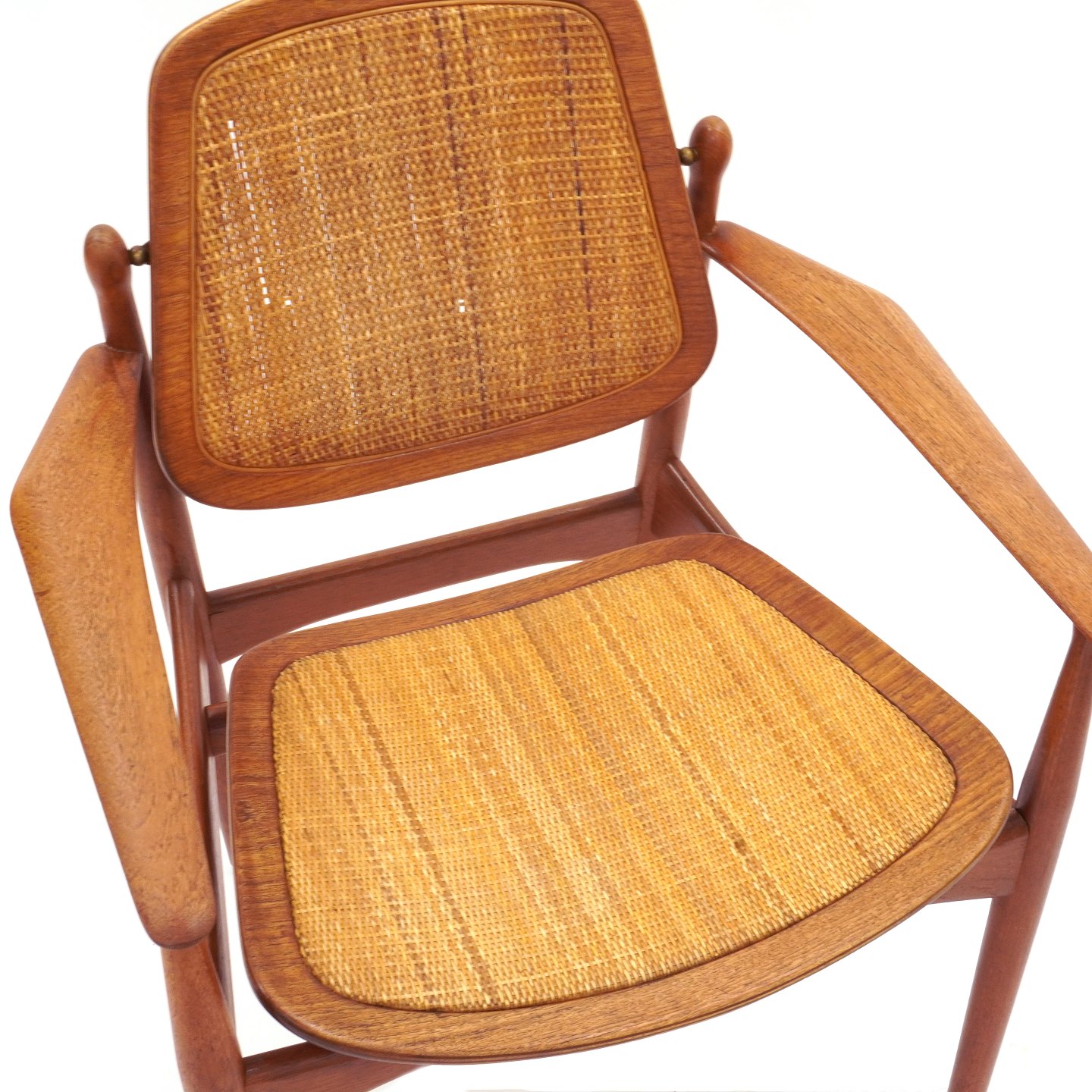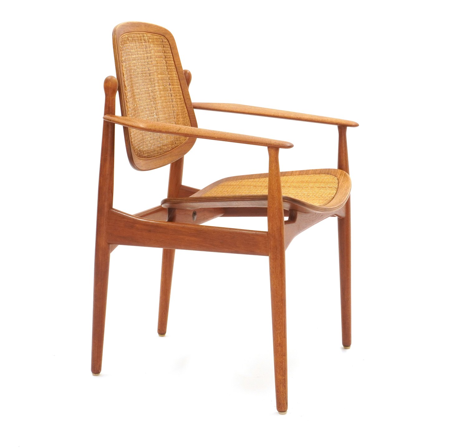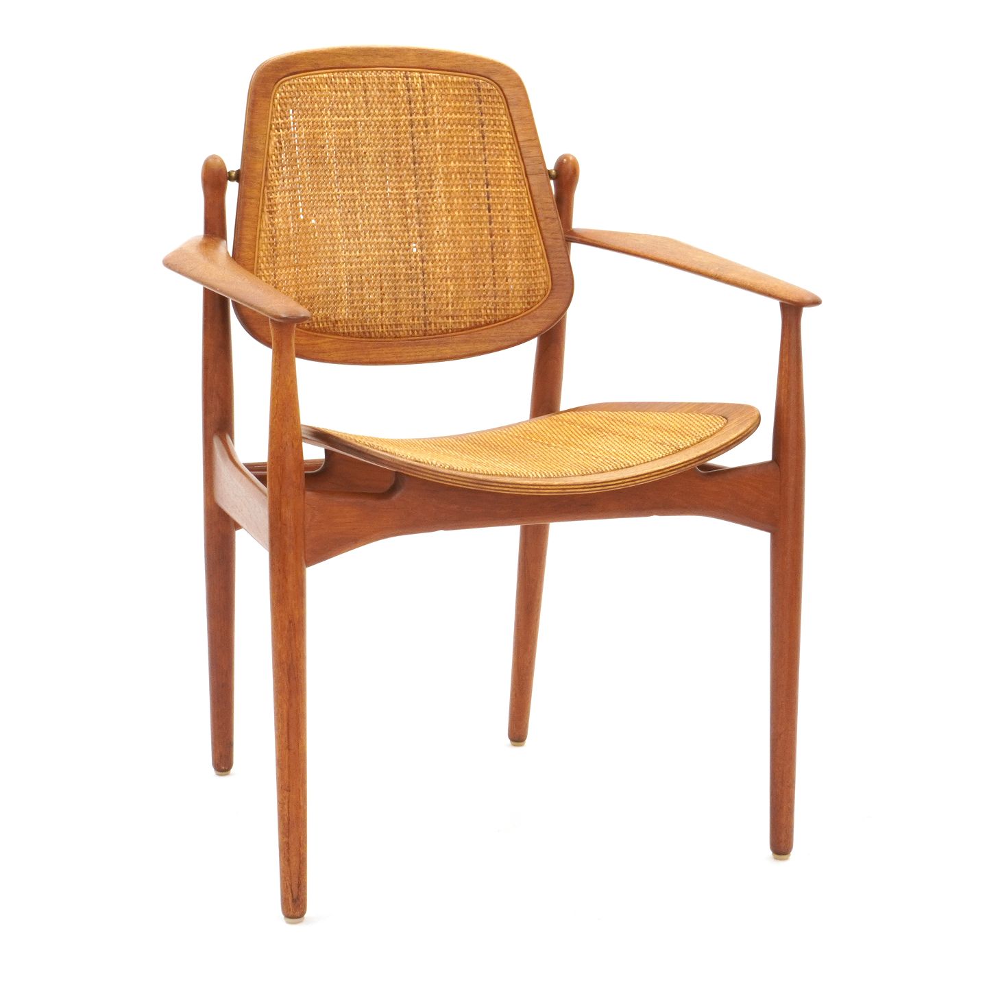 | Arne Vodder armstol FD 186, teak og sjeneflet, fremstillet af France and Daverkosen 1956-57 H: 88cm Pæn stand med små brugsspor på sjeneflet Stel med pæn udført reparation Emne nummer: 661 |