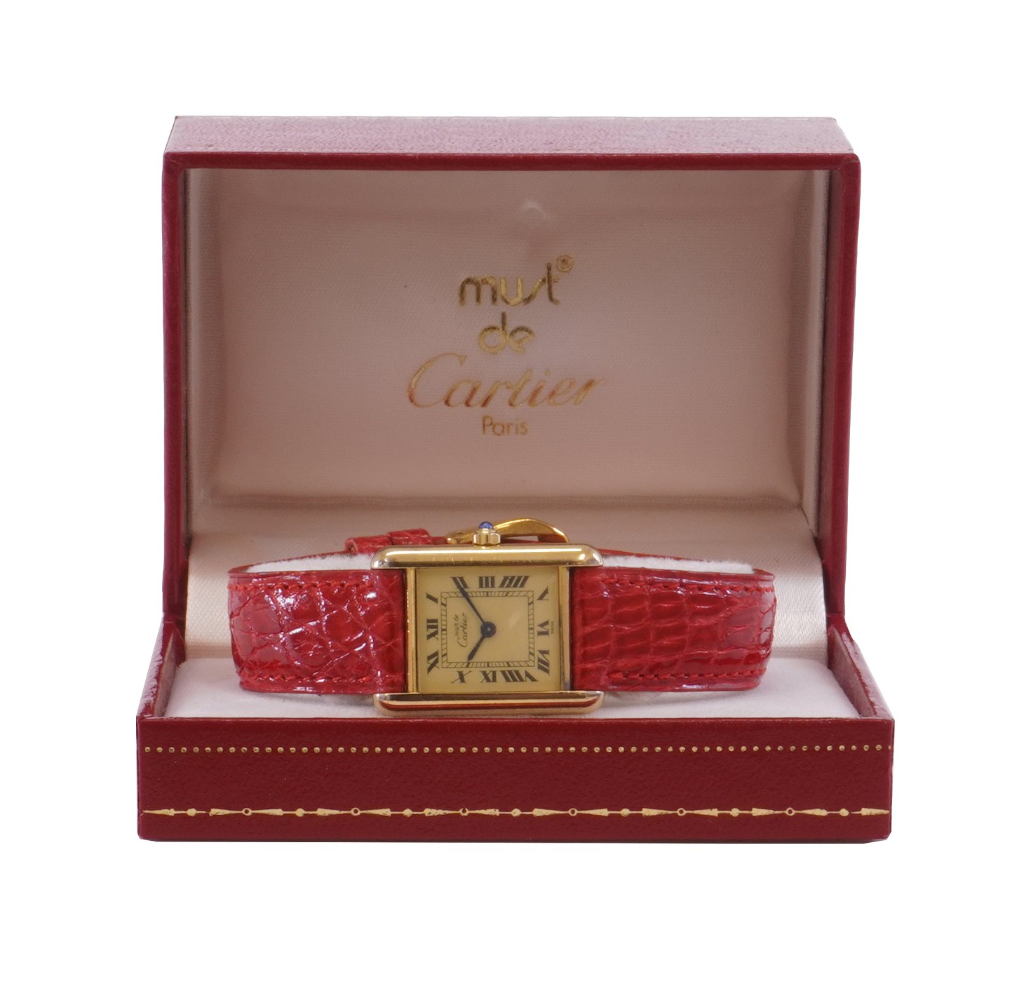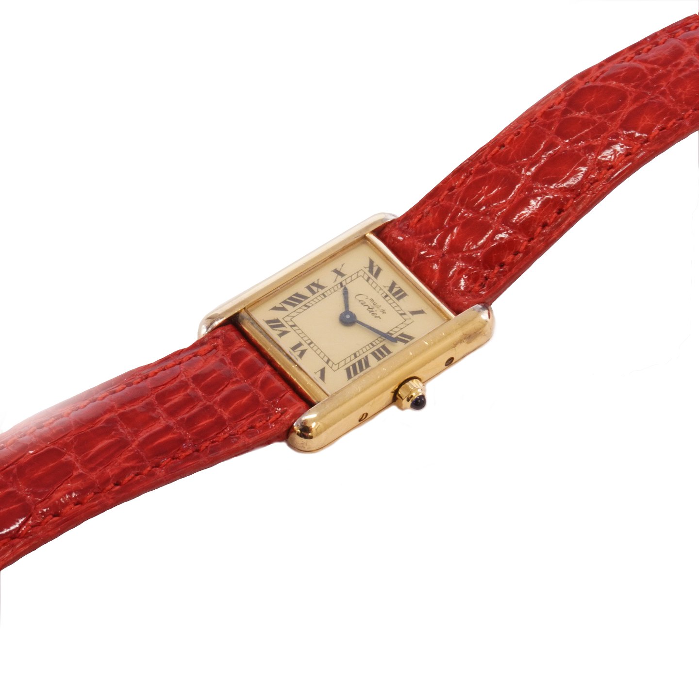 Cartier Tank Vermeil Quartz i forgyldt sterling sølv med certifikat år 1994