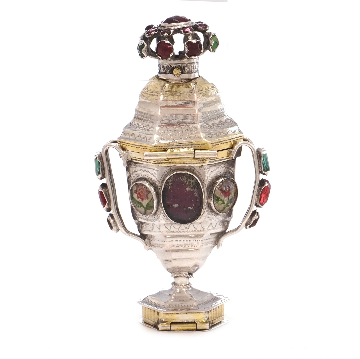 Hovedvandsæg i delvist forgyldt sølv med utydeligt mesterstempel
