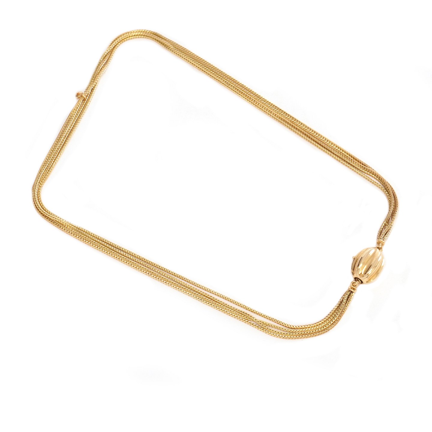 Ole Lynggaard kaffebønnelås med fireradet halskæde begge i 14kt guld
