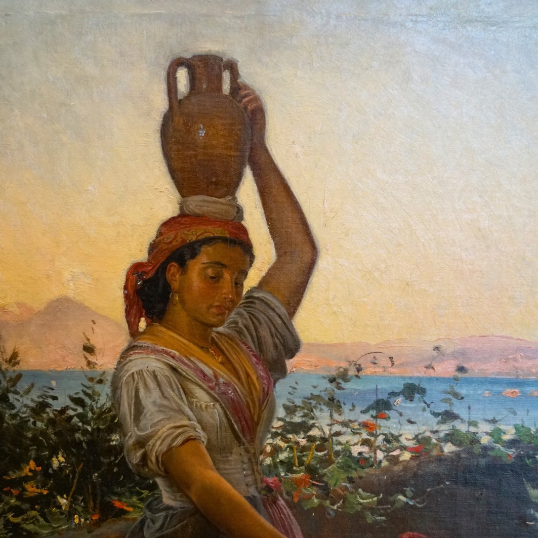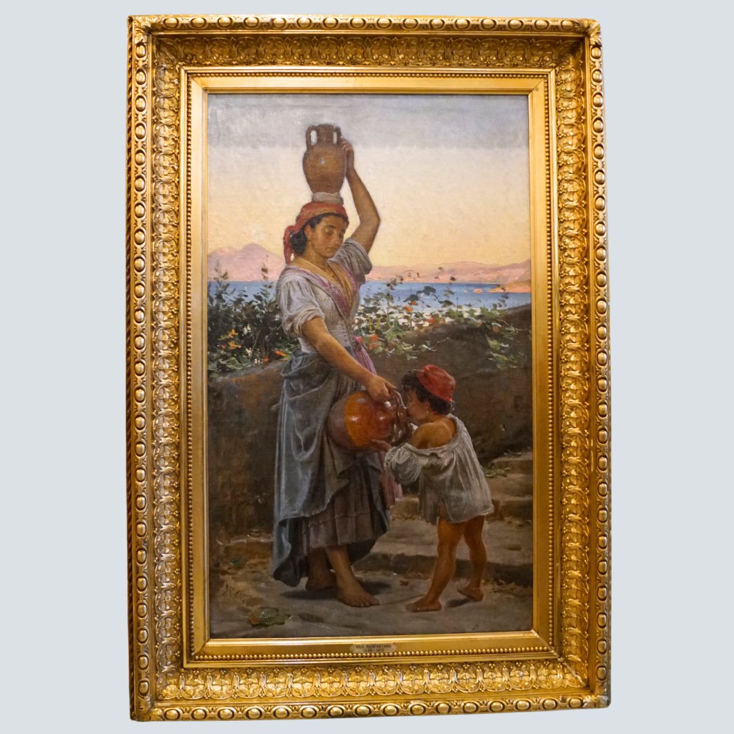 | Vilhelm Rosenstand; Oliemaleri med kvinde og barn, motiv fra Italien. Olie på lærred. Signeret. Lysmål: 71 cm x 44 cm. Med ramme: 91 cm x 62 cm. I guldramme. Vilhelm Rosenstand f. 31. juli 1895 d. 11 marts 1915. Kontakt os gerne, hvis du søger noget specifikt. Hvad du ser på vores hjemmeside, er blot et udvalg af det, som vi har. |