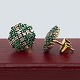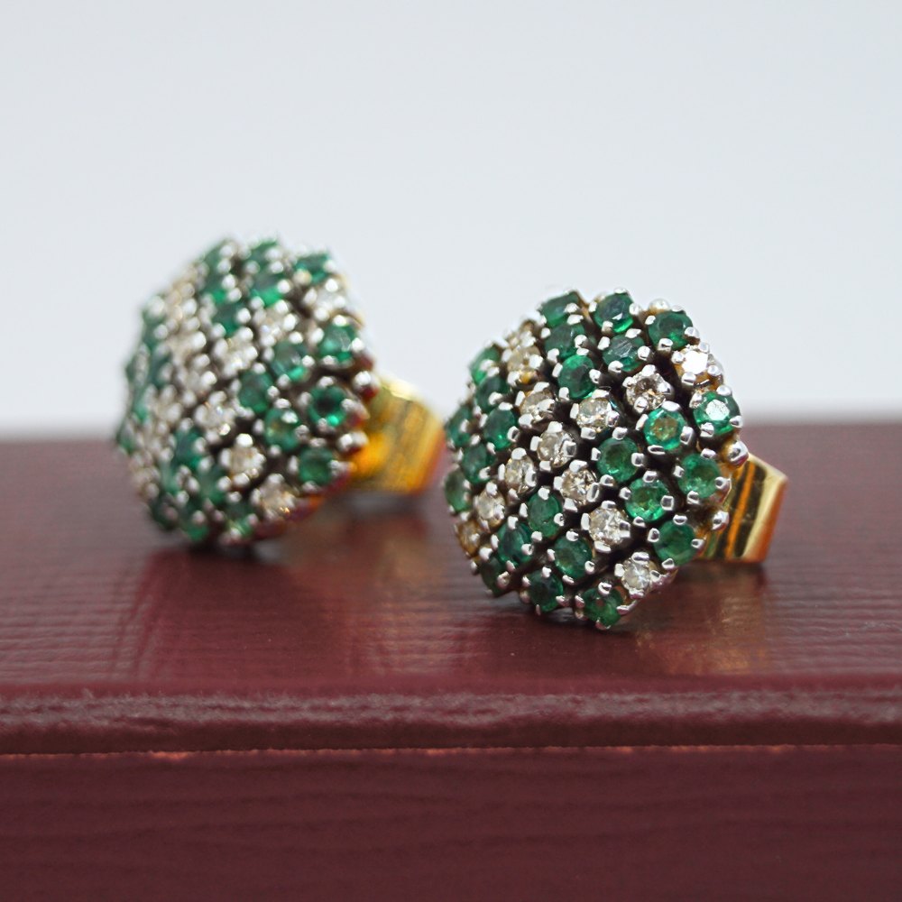 Par store runde øreringe i 14 kt. guld. prydet med diamanter og smaragder, fattet i hvidguld. diamanter i alt 0.56 ct. Med stor kraftig lås. Dia 1,5 cm.