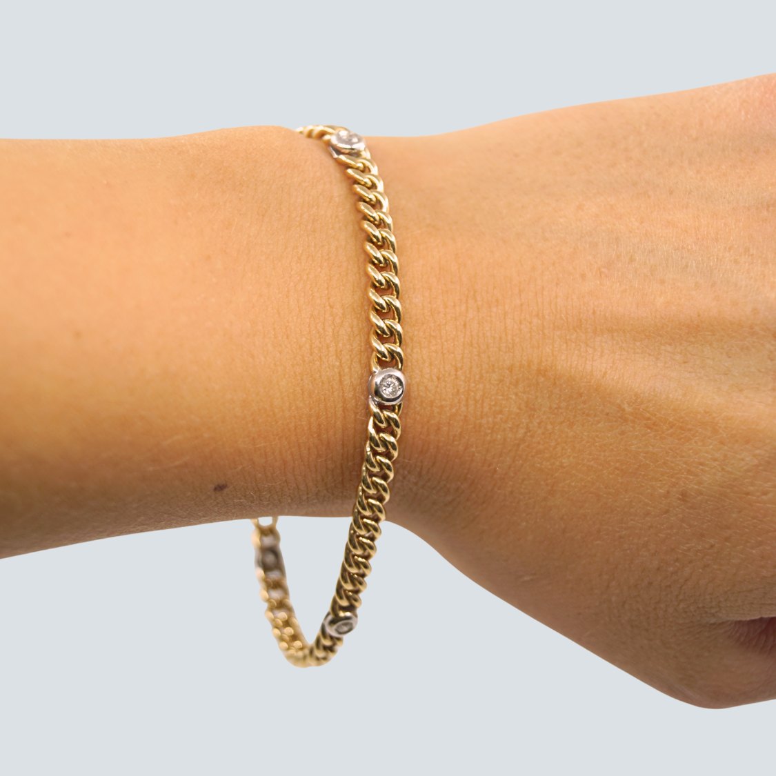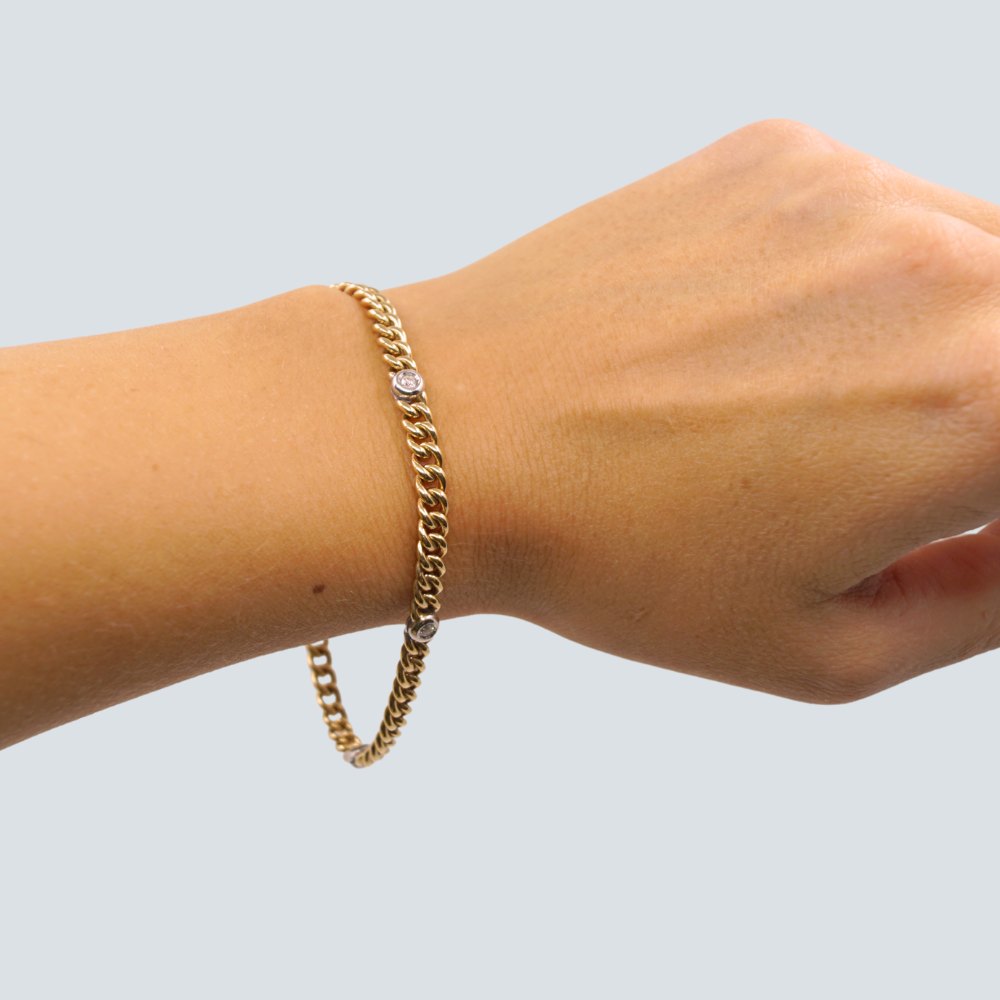 Panser armbånd af 14 kt. guld. prydet med 5 diamanter fattet i hvidguld, i alt 0.24 ct. W VS.