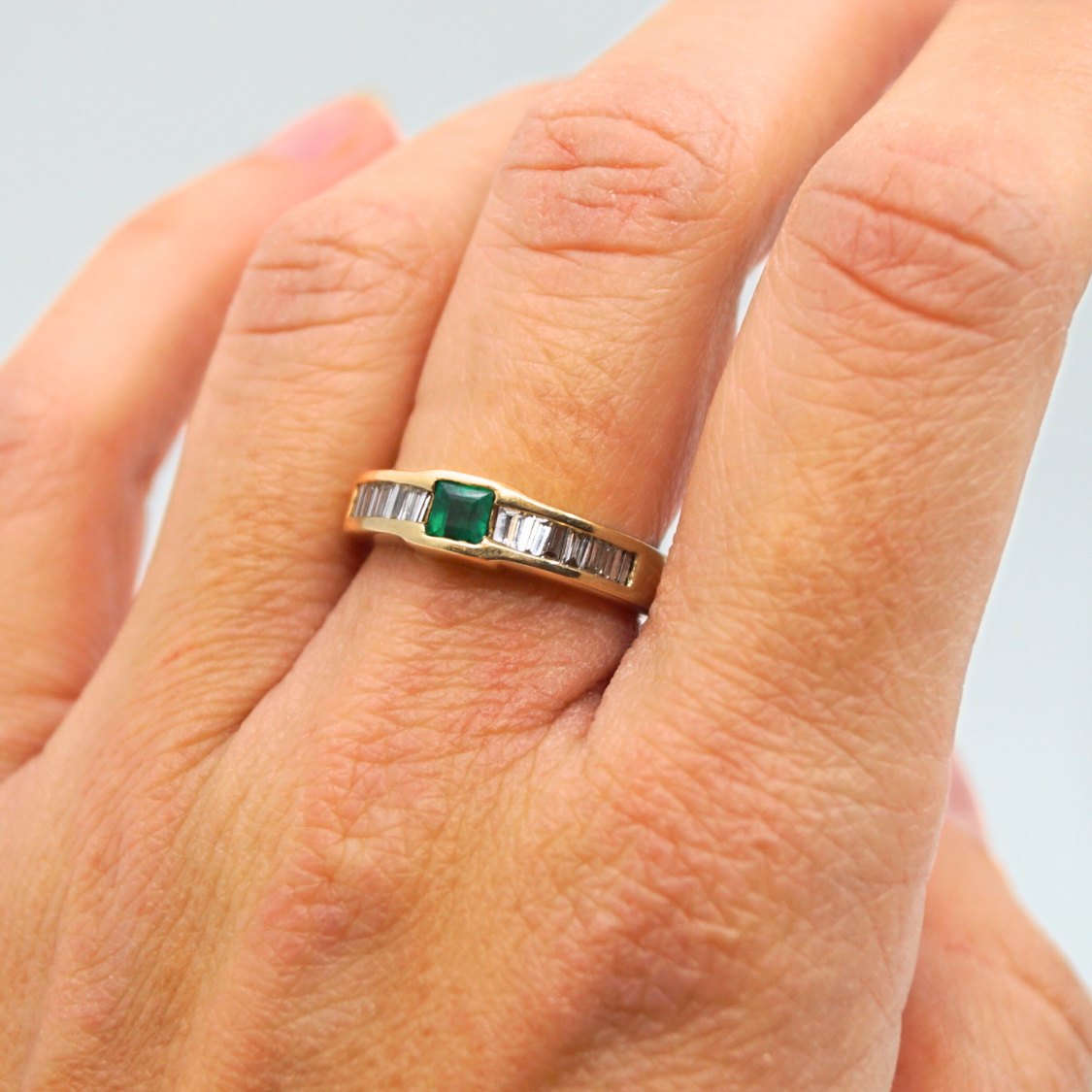 | Ring i 18 kt. guld, prydet med smaragd og diamanter, i alt 0.40 ct. Top Wesselton VS. Ring str. 51,5. Stemplet "750". Kontakt os gerne, hvis du søger noget specifikt. Hvad du ser på vores hjemmeside, er blot et udvalg af det, som vi har. |