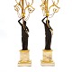 Et par store lueforgyldte og delvist sortpatinerede bronzekandelabre med marmorfod og -stamme