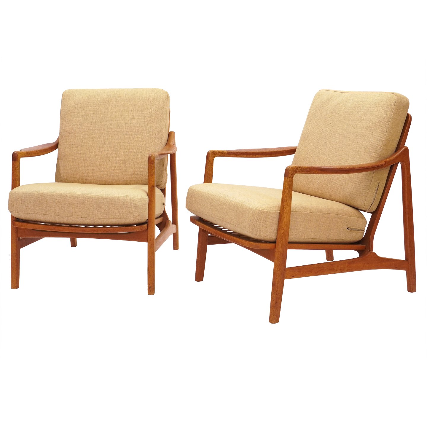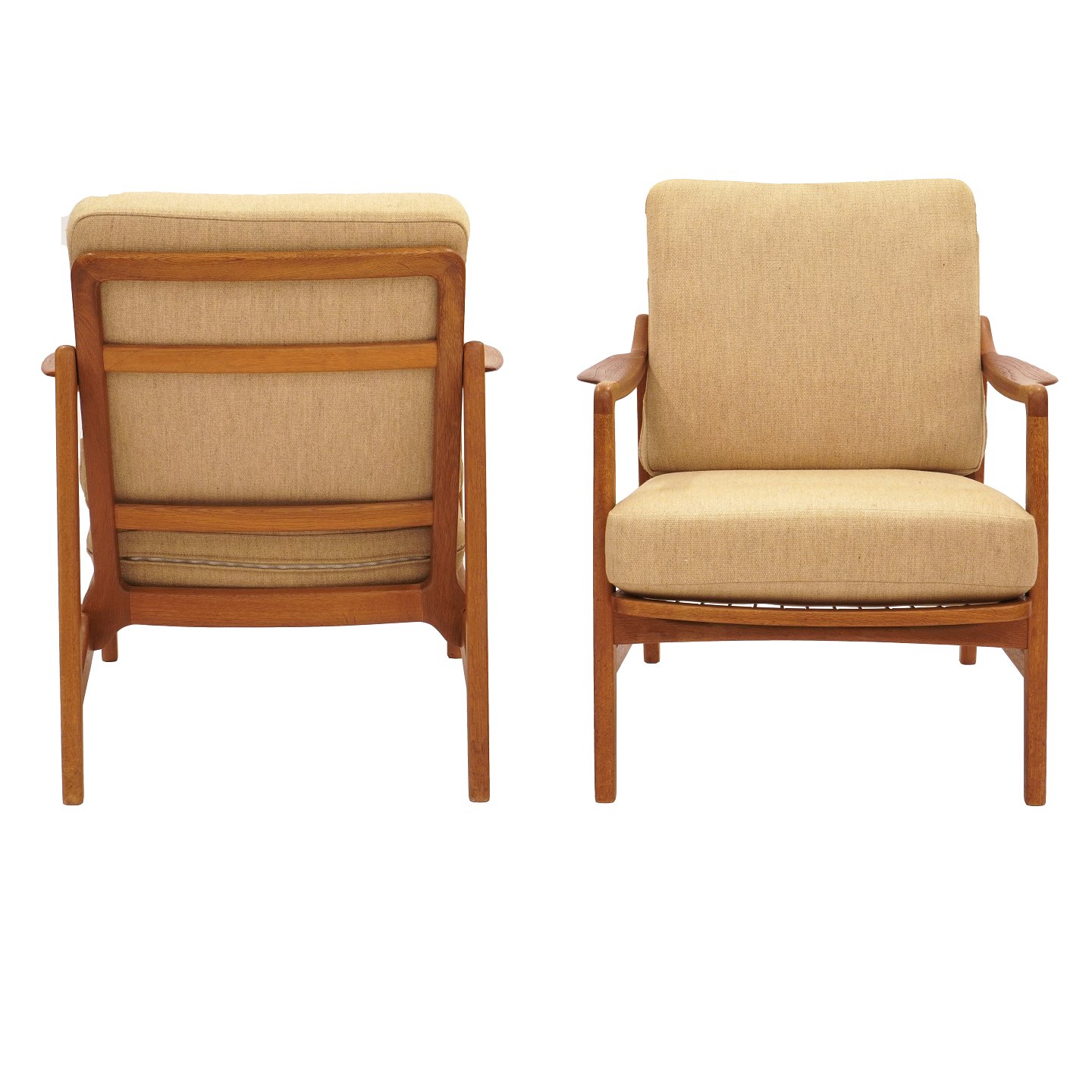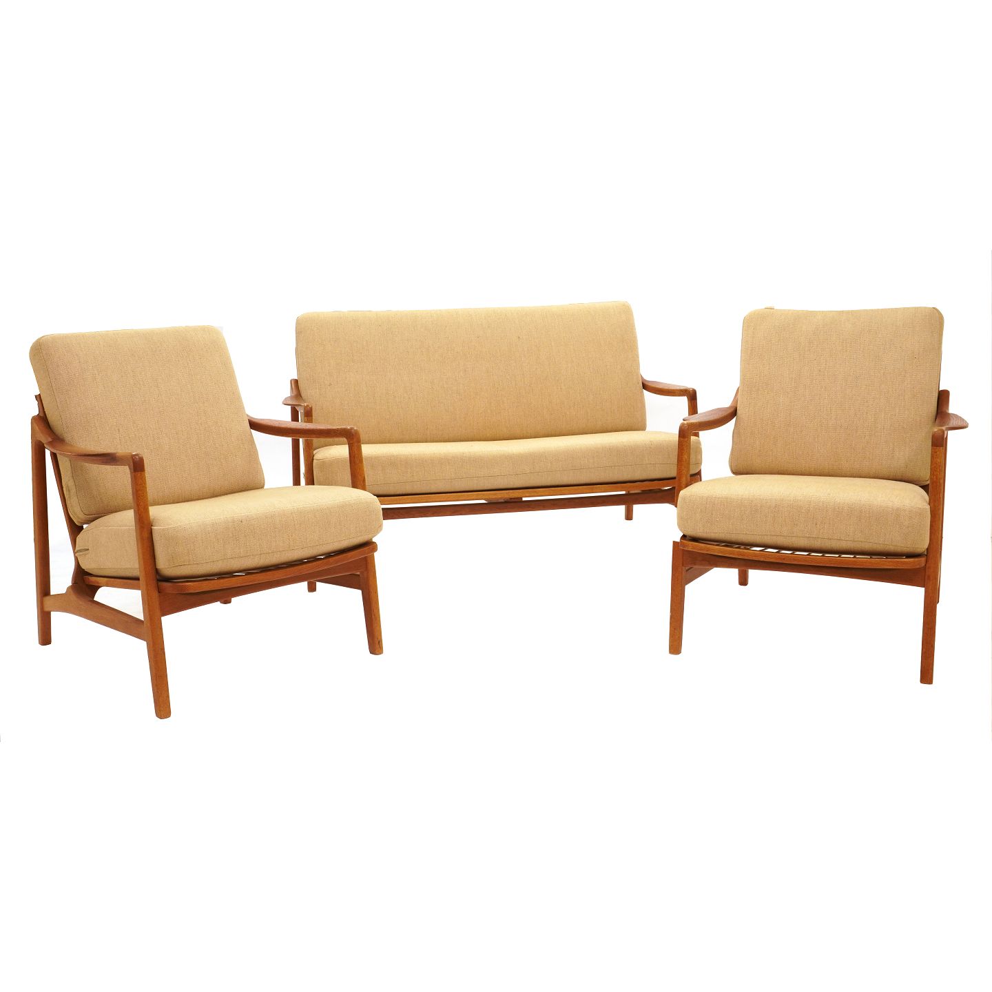 Tove & Edvard Kindt Larsen møbelsæt med sofa og to armstole fremstillet af France and Daverkosen med stel i eg og teak