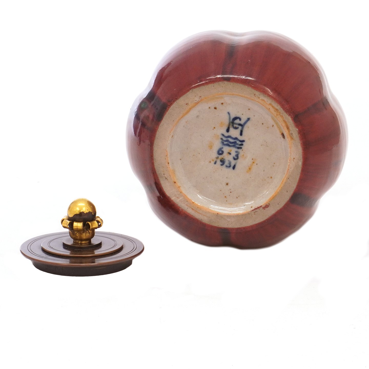 Carl Halier stentøjsvase med okseblodsglasur og bronzelåg af Knud Andersen