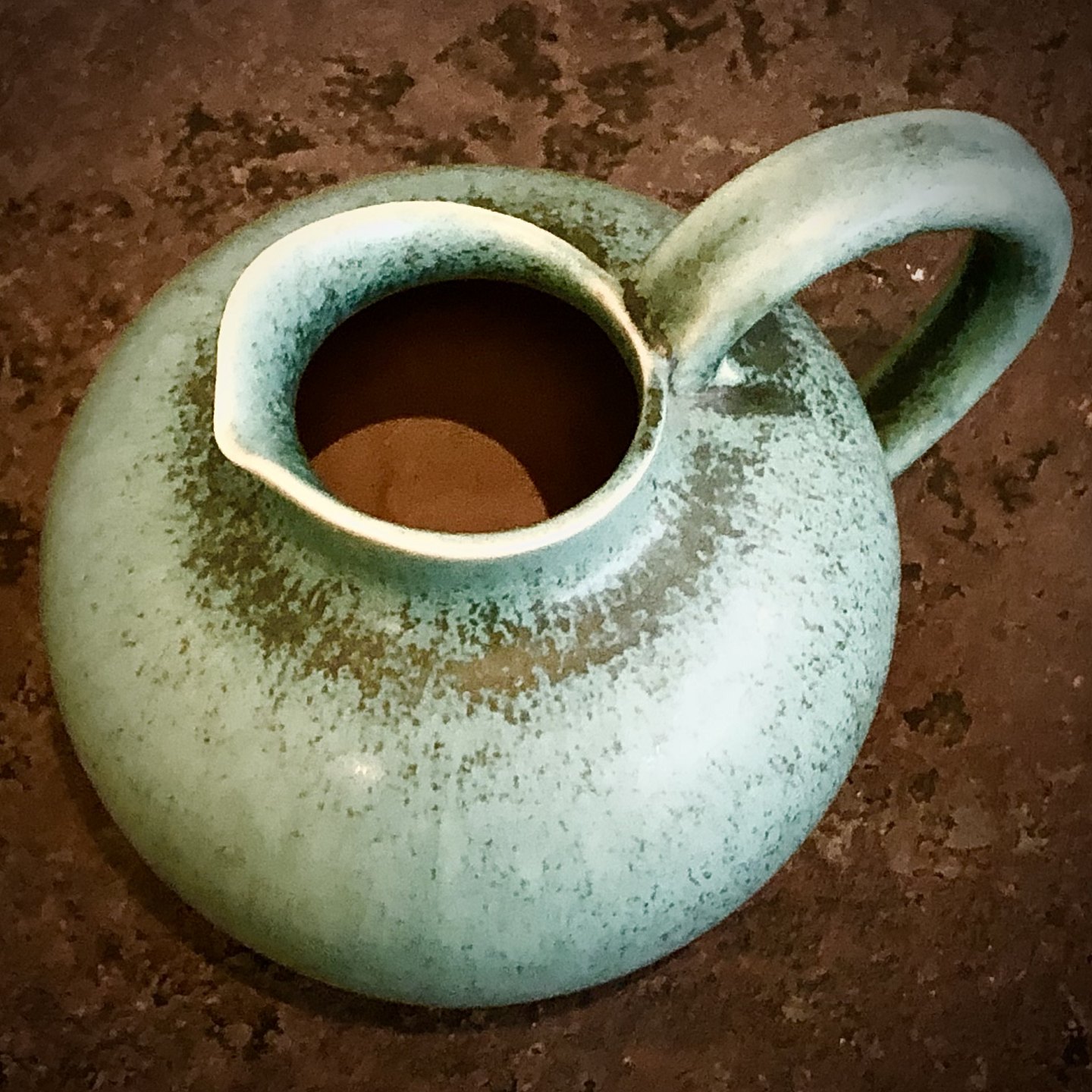 Saxbo Kande med heh36 (Caribbbean) glasur. Model 90. Stemplet med Ying Yang mærke fra perioden 1938-1951. Mål H. 16 cm. X 17 x14,4 cm.#28