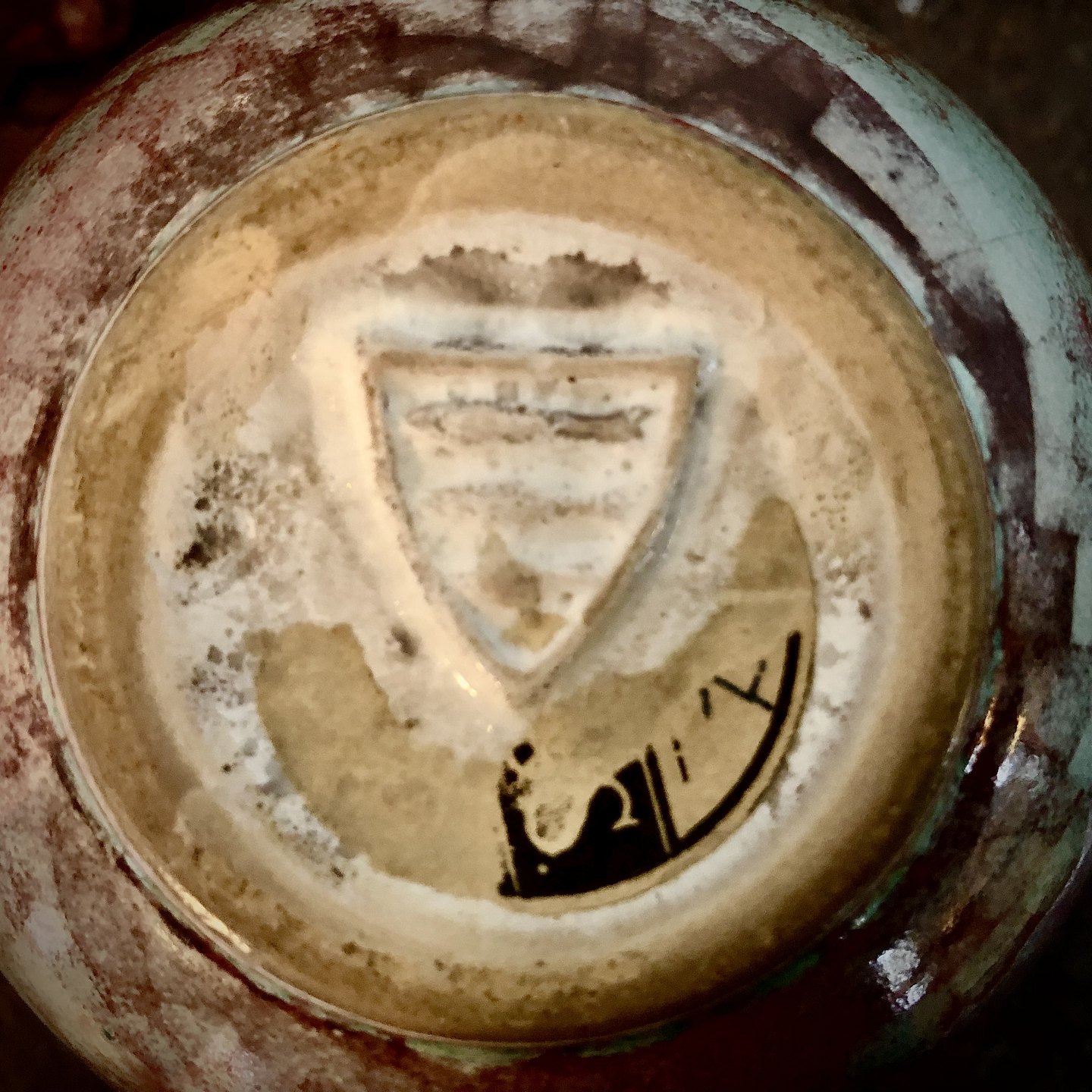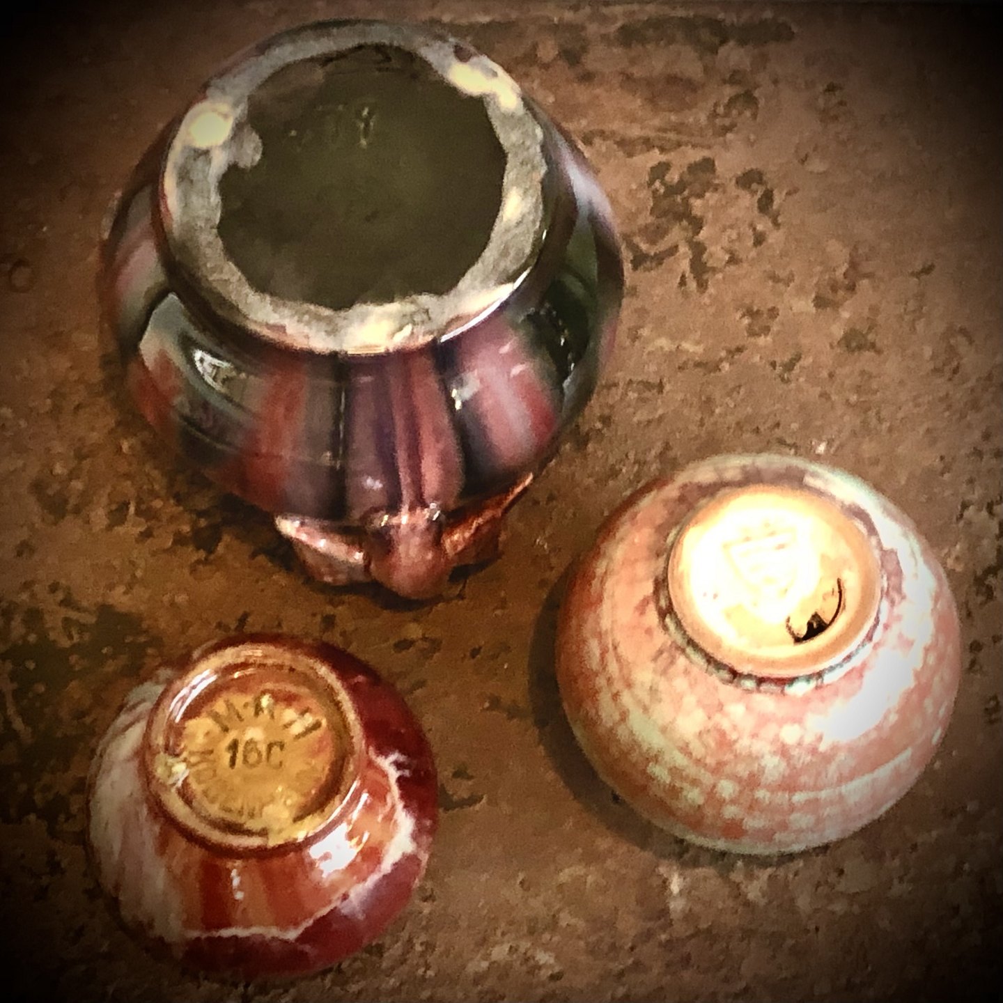 3 dele keamik. Michael Andersen skål med tre fugle. Rødsort løbeglasur .H. 11 cm Ø 14 cm. Pris 1200kr. Lille Michael Anderes vase H. 10 cm. Ø 9,5 cm pris 700 kr. Lille vase