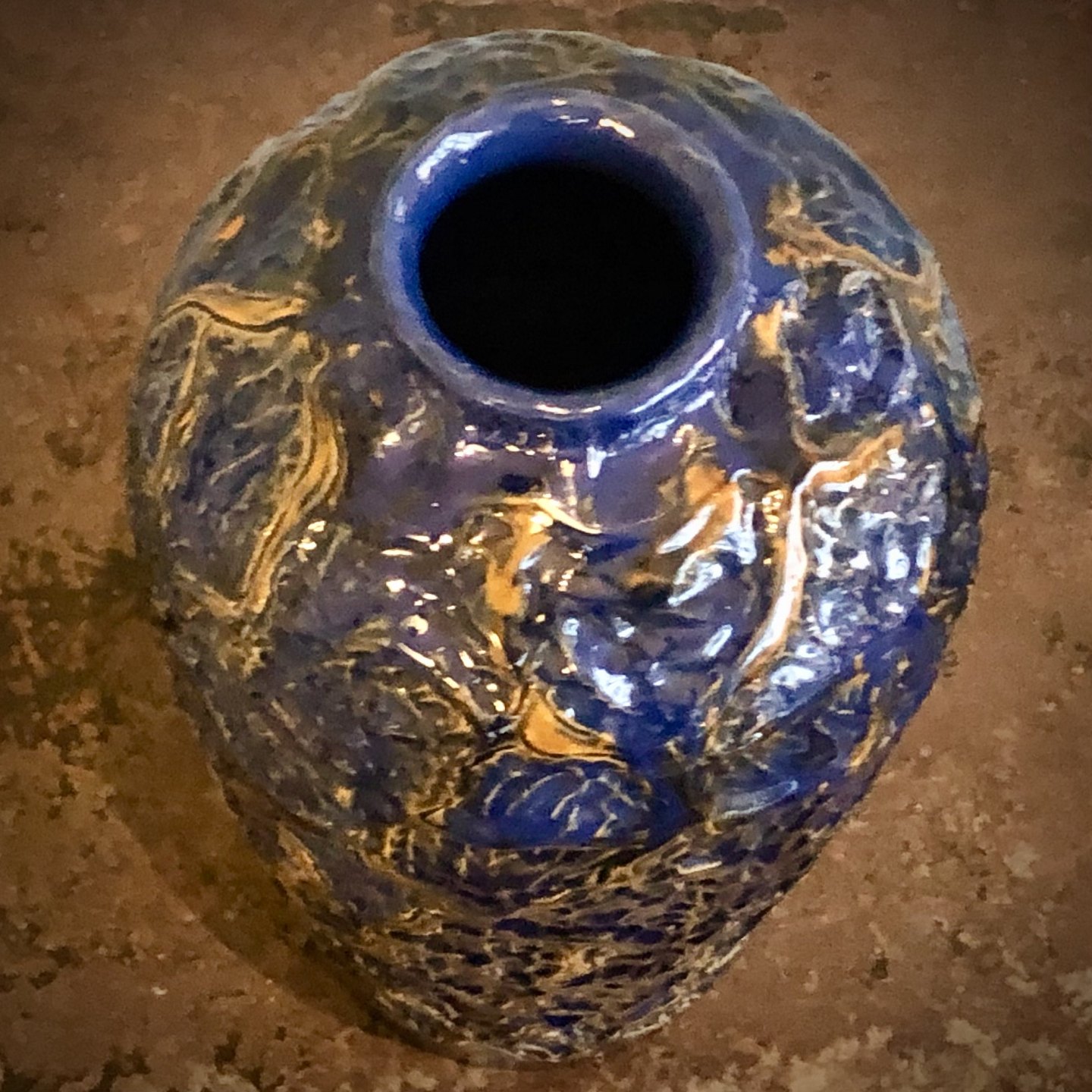 Michael Andersen & Søn. Stor Vase med Blålilla og brun glasur. H. 32 cm. Ø 19 cm