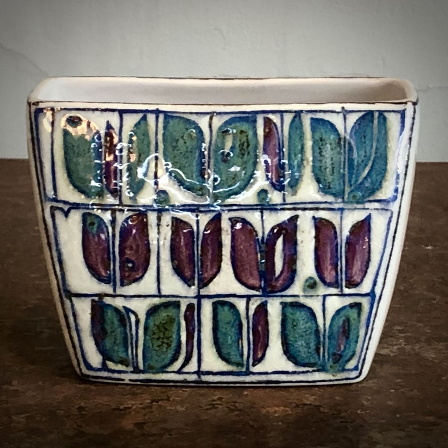 Aluminia - Royal Copenhagen Fajance vase formgivet af Mariorie Fishing. Model 752/3308. H. 8 cm. B. 11 cm. 8,5 cm.