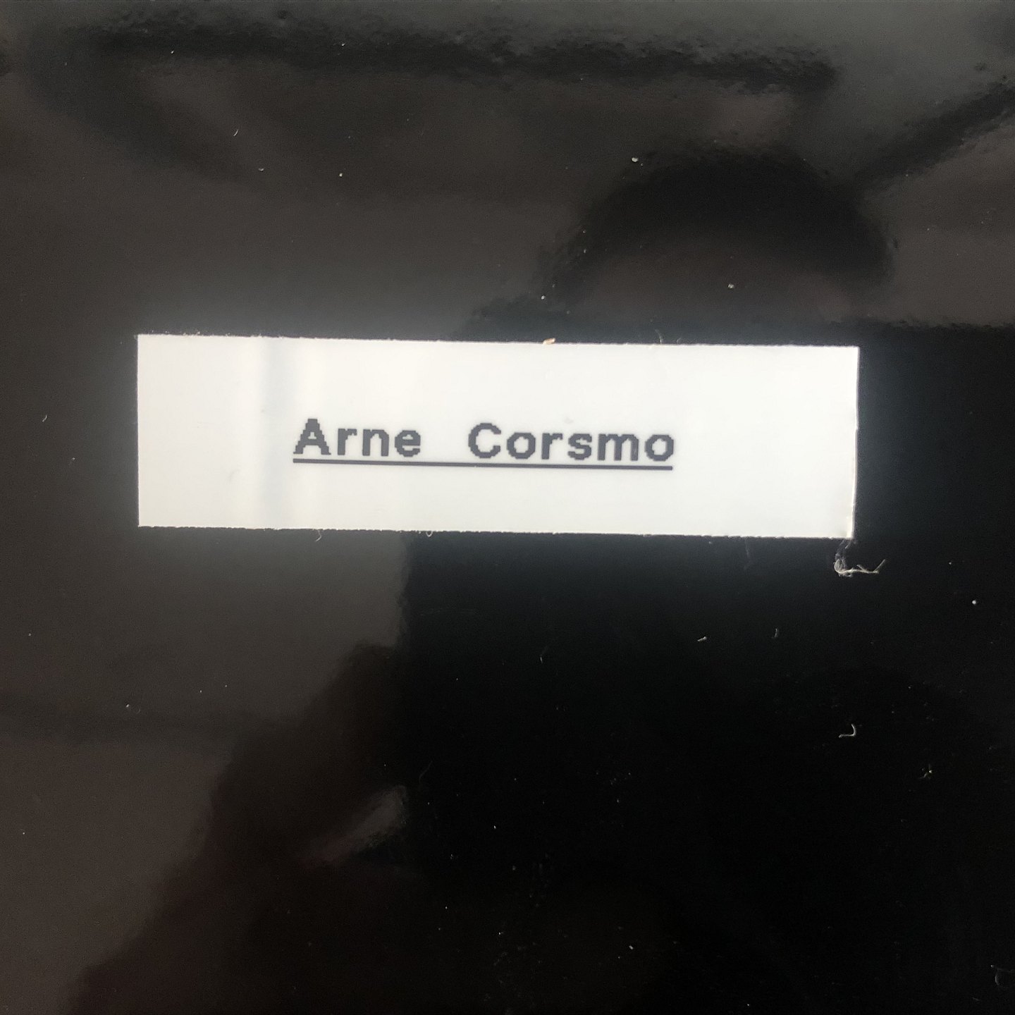 | Arne Korsmo rundt fad med gul & sort emajle. Ø 26 cm. Pris 1200 kr. Fin stand Kegleformet vase af mørk-grøn & limegrøn emalje H. 9 cm. Ø 6 cm. pris 650 kkr. Fin stand Kegleformet vase af sort & grøn emalje. H. 14,5 cm. Pris 650 kr. Fin stand Skål med sort blank emalje H. 6,7 cm. Ø 12 cm. fremstår med mindre afslag på kanten 650 kr Emne nummer: #26 |