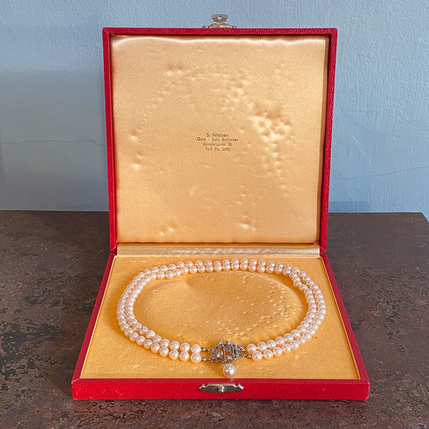 Perlekæde af kulturperler med 4 brillanter 0,3k