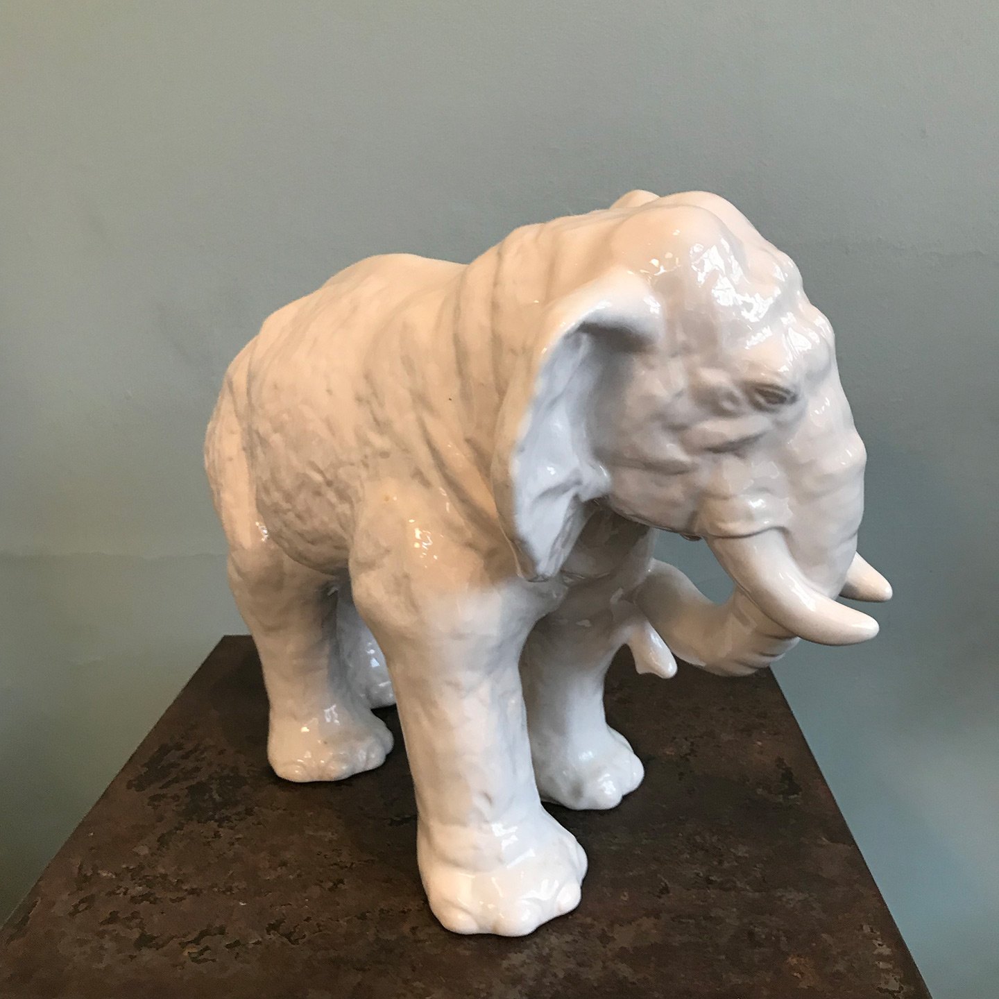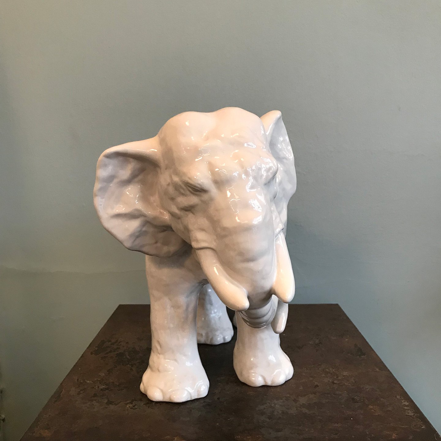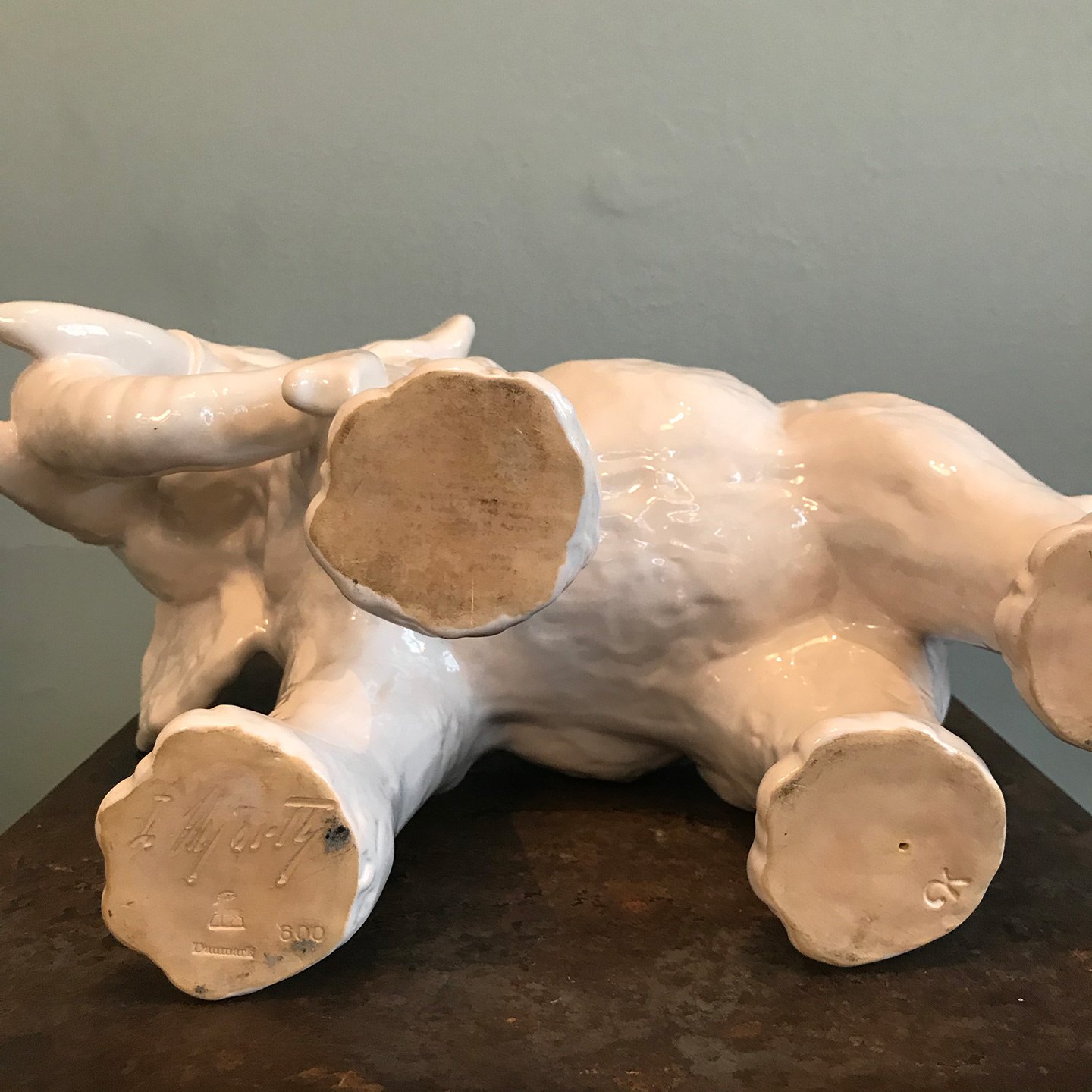 Elefant i hvidglaseret keramik signeret L.Hjort/ og GK for Gertrud Kudielka.