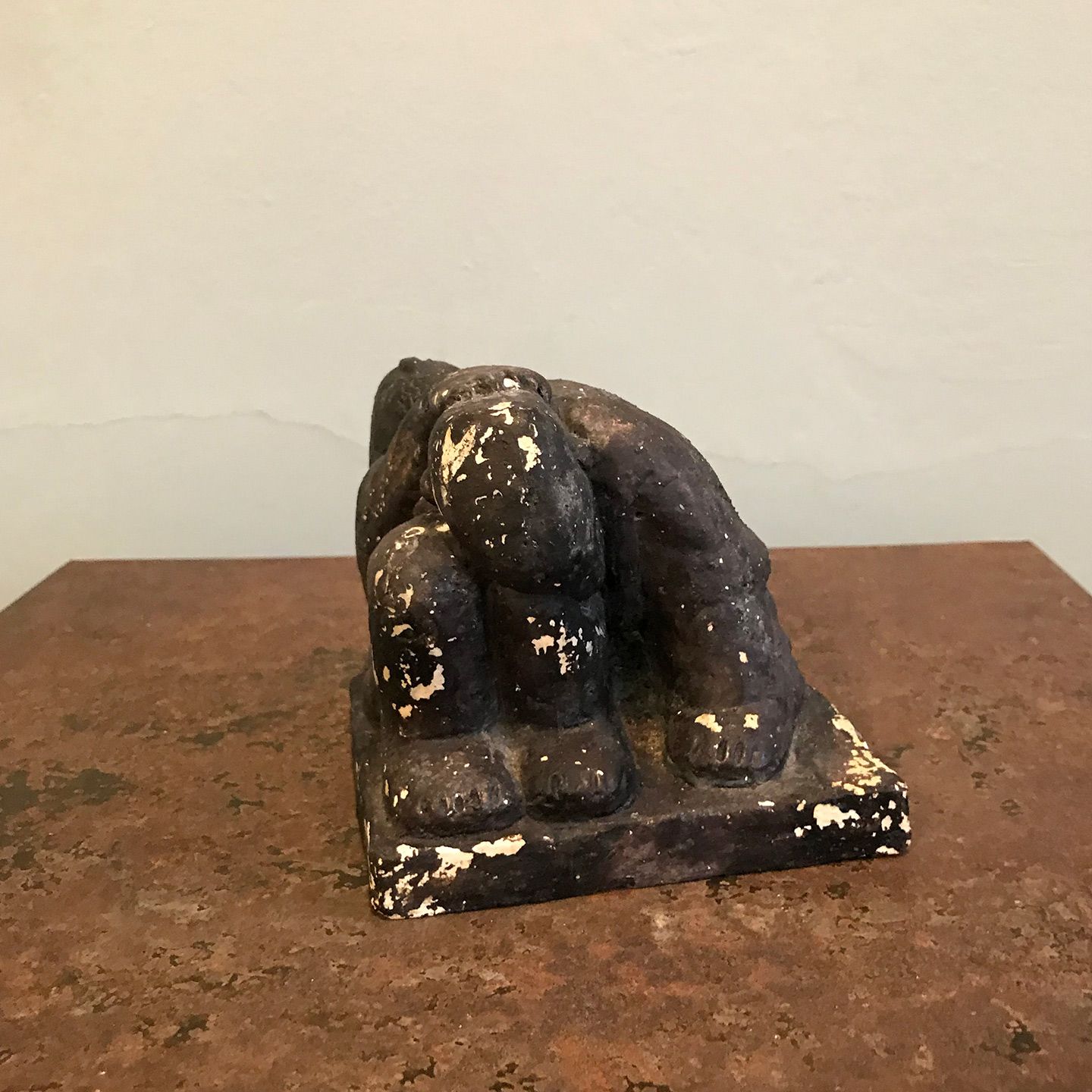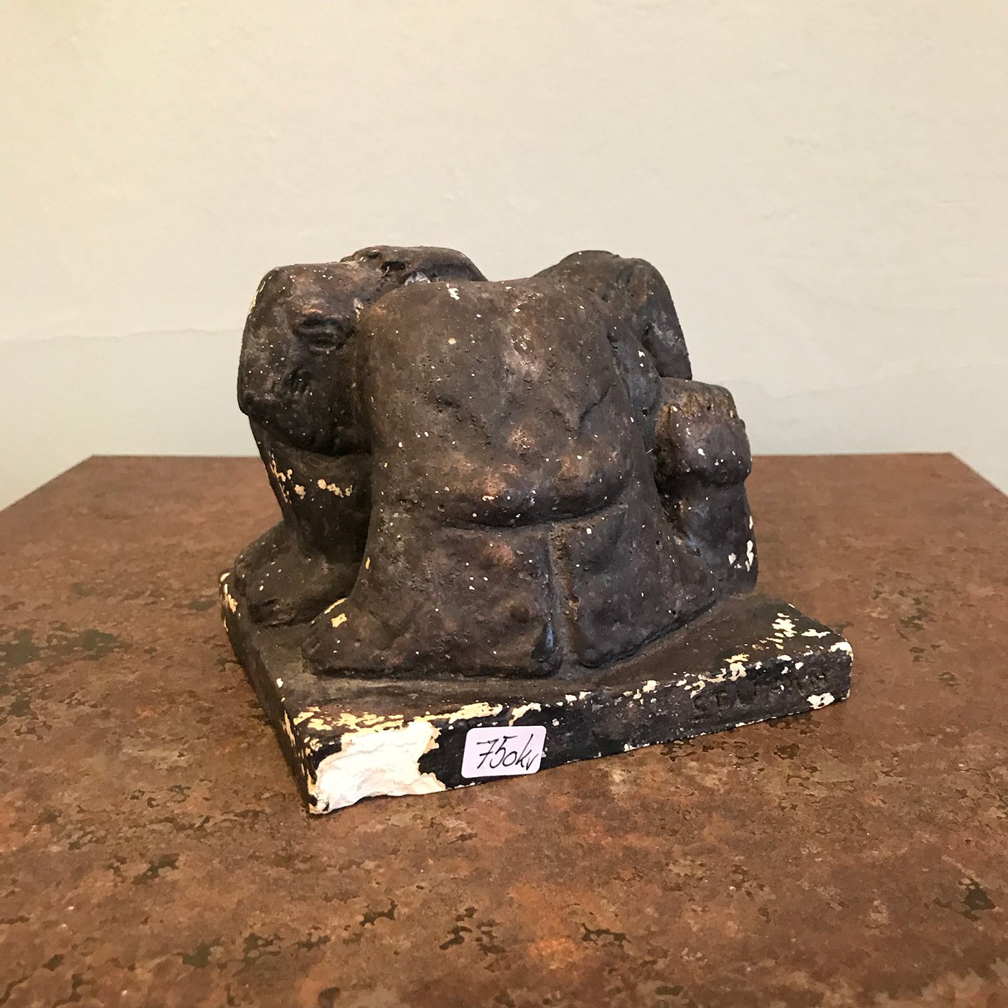 Figur i sort dekoreret gips udført og signeret af den svenske kunstner Stefan Morlind i 1938, forestillende 2 personer tæt sammenslynget.