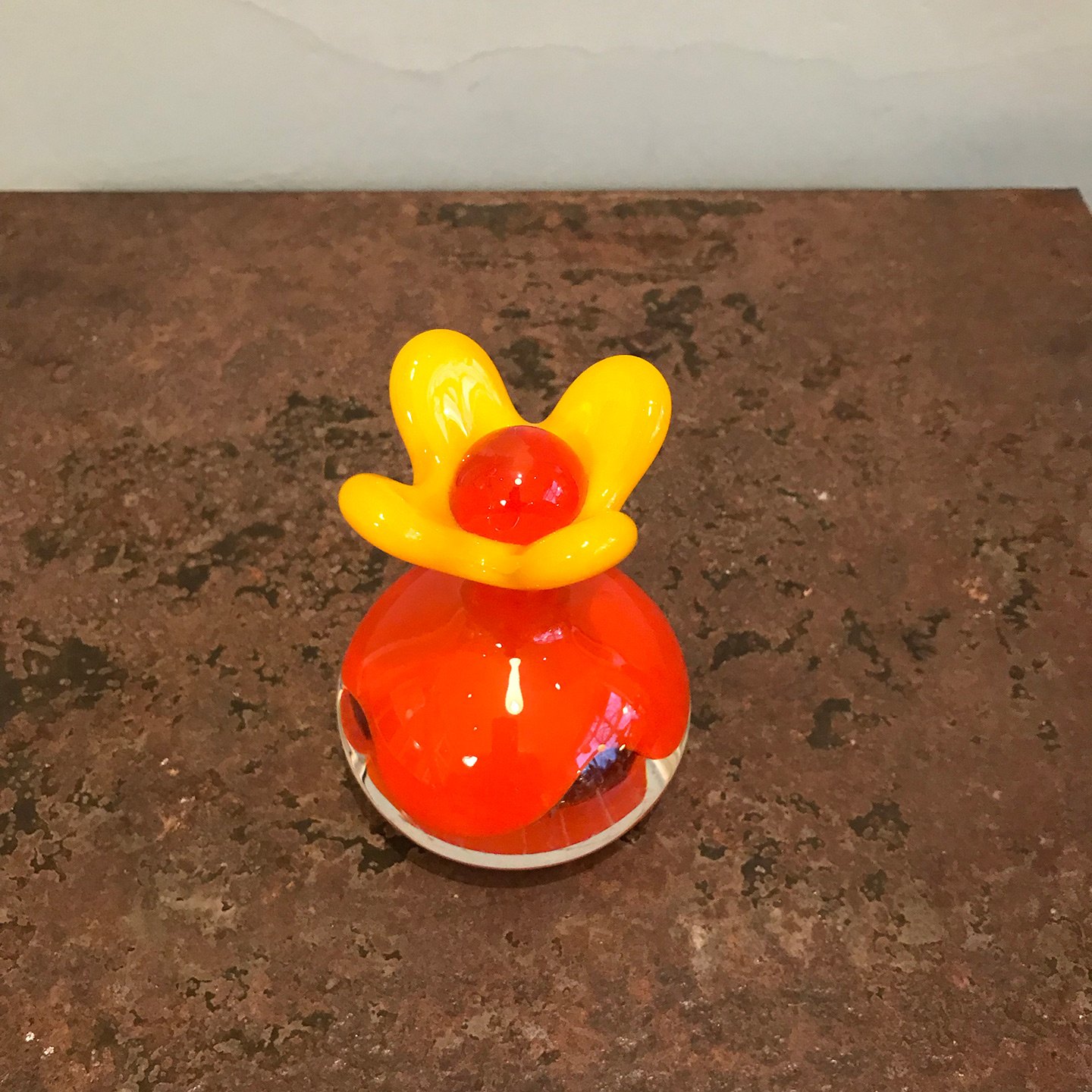 Glas skulptur i form af blomst ,udført i gul,orange og klart glas.