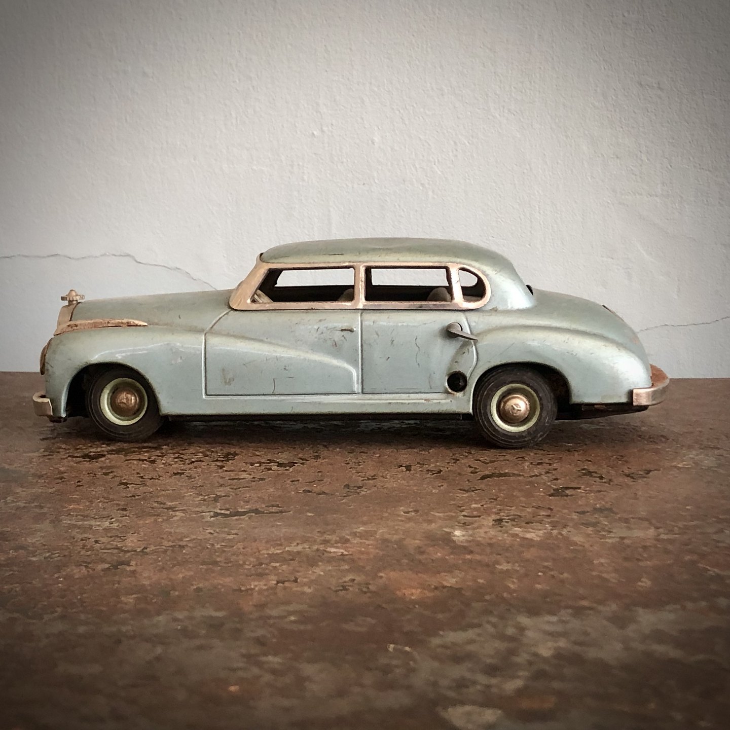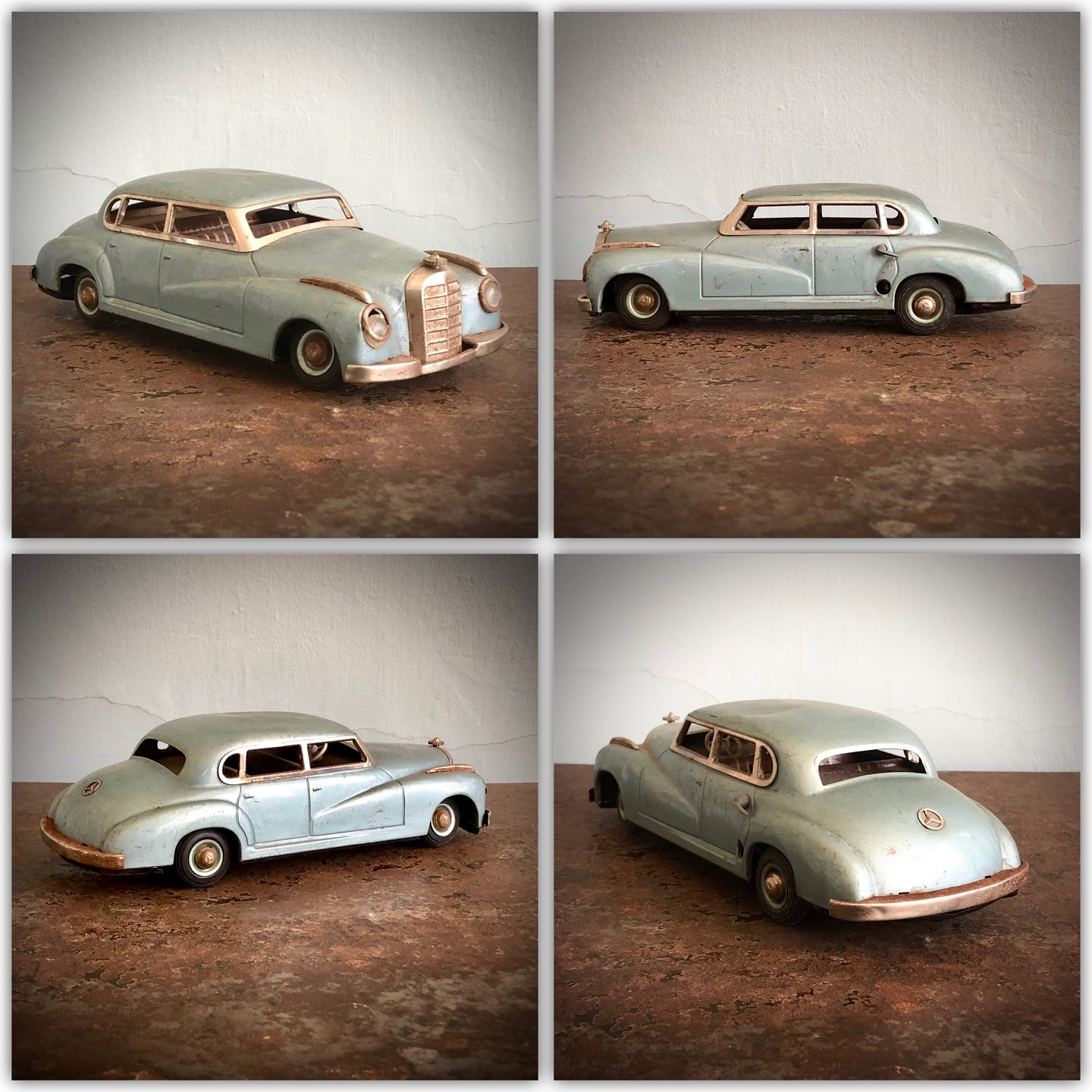 | Gamle legetøjsbiler og samlinger købes.Mercedes-Benz model 300 fra 1954 Mekanisk optræk med nøgle. made in west Germany. L. 24 cm. D. 9 cm. H. 6,5 cm. Fremstår med patina, ridser og mærker. Emne nummer: T3 |