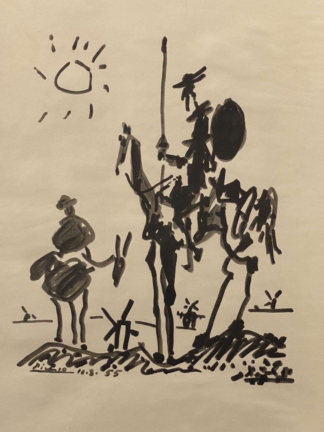 Tryk efter Pablo Picasso. Don Quicholte. indrammet med sort træramme.