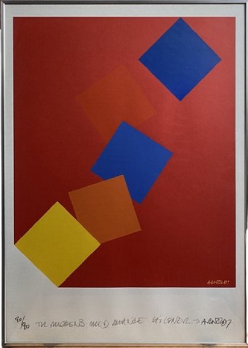 Signeret og nummereret: Per Anoldi 90/90 samt med en privat dedikation.Indrammet i aluramme.