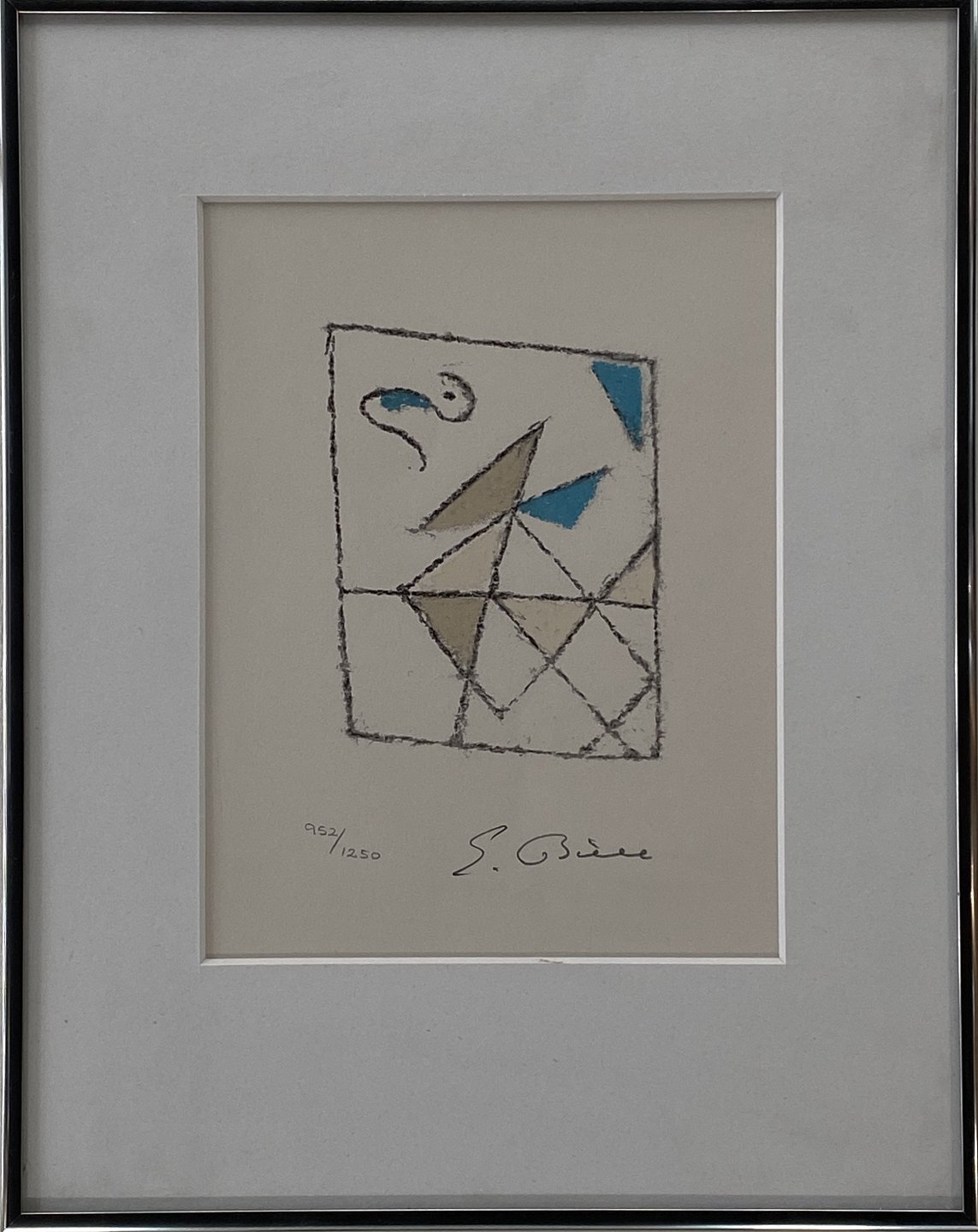 Ejler Bille litografi med passepartout i ramme.