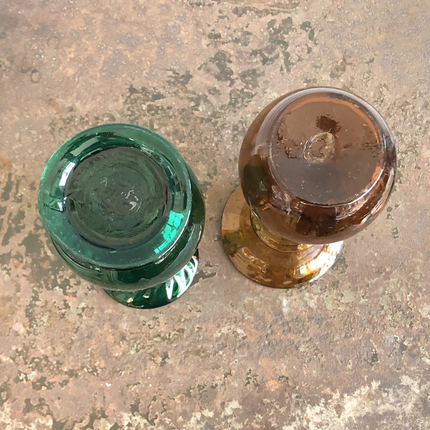 To danske mundblæste balusterformede Zwibelglas/Hyacintglas