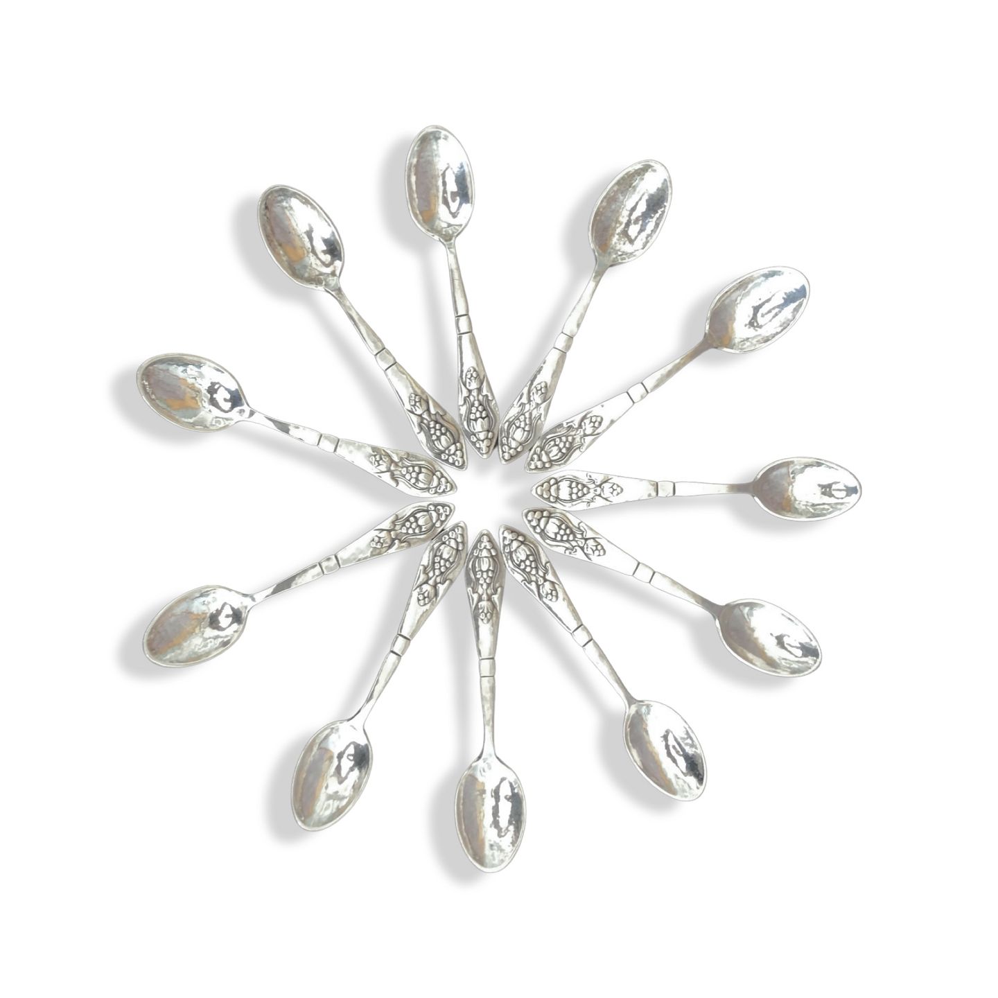 11 stk. Kaffeskeer model 10 af sølv. Stemplet Georg Jensen, Copenhagen, 10 samt GI 830s med monogram fra 1915-1930.