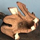 Figuren er usigneret. Ser ud til at være brændt i brænde/kulfyret ovn. Udført med en speciel teknik hvor revner er udfyldt med lysere materiale for at opnå lysere mønster som en naturlig giraf.