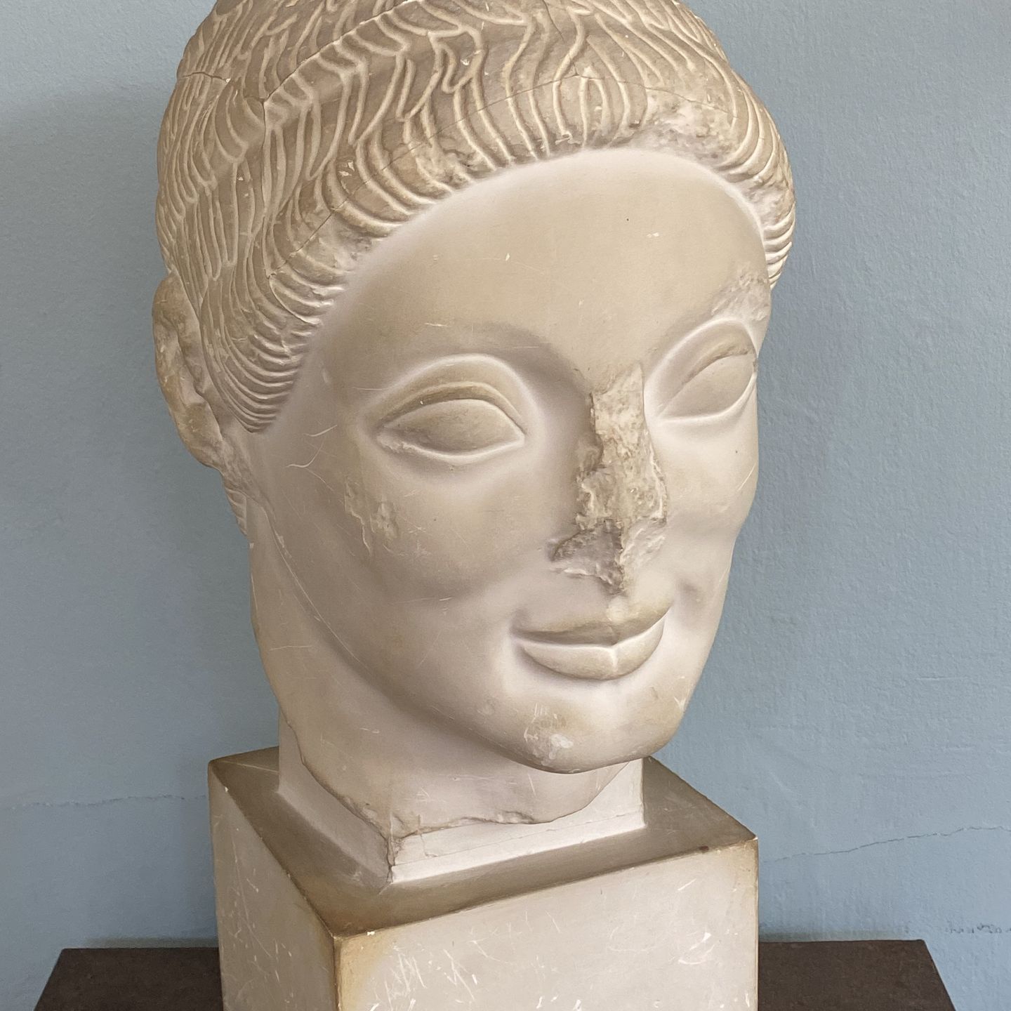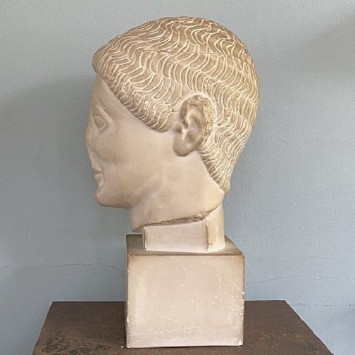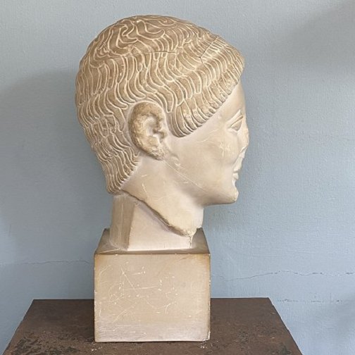 | Gipsbuste. Afstøbning fra Glyptoteket af "Rayet hovedet" (ung mand),Grækenland d.6. århundrede. Nypris 3800kr. Denne buste er fra 1930erne og har en rigtig fin patina. God stand. Emne nummer: 150 |