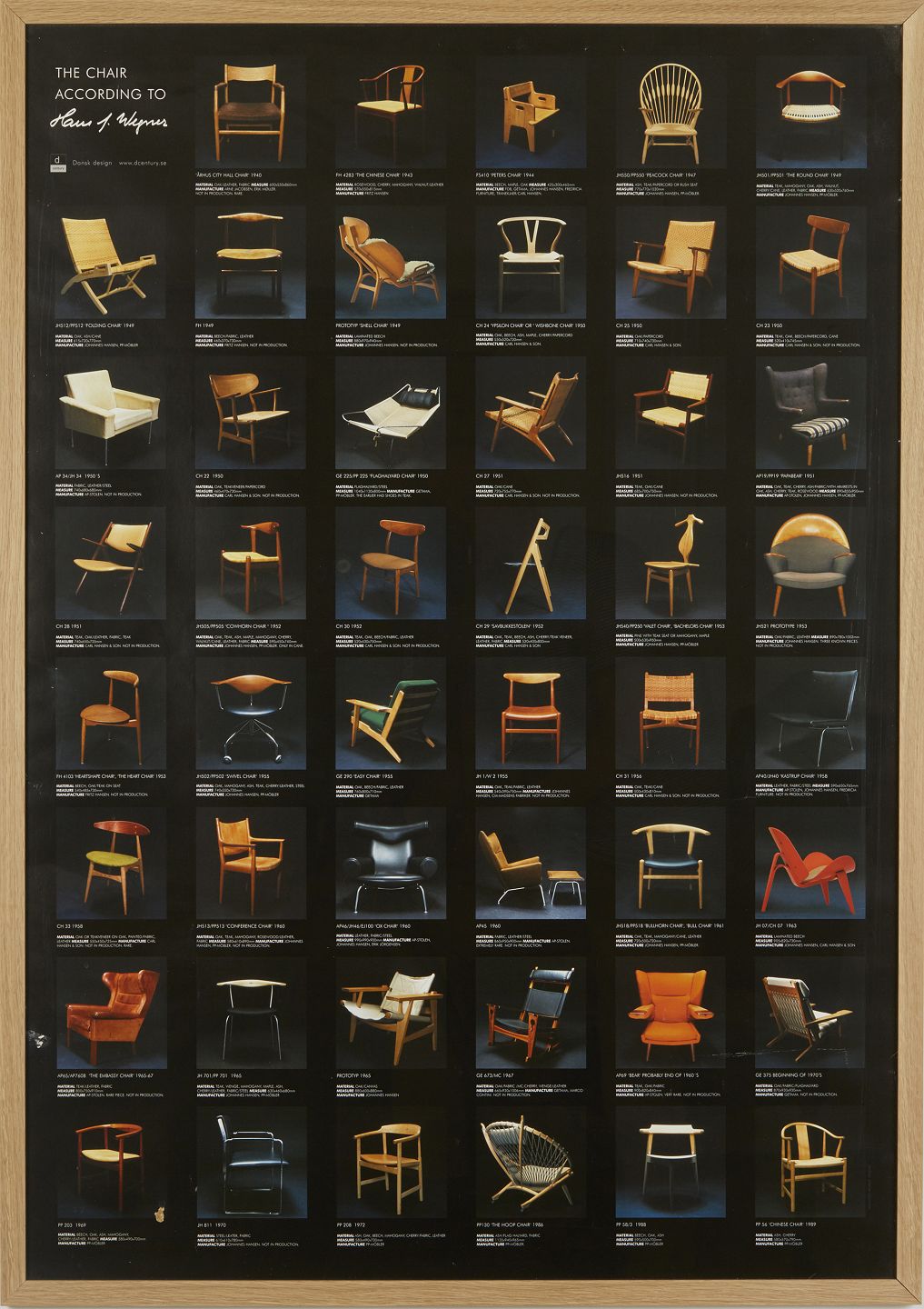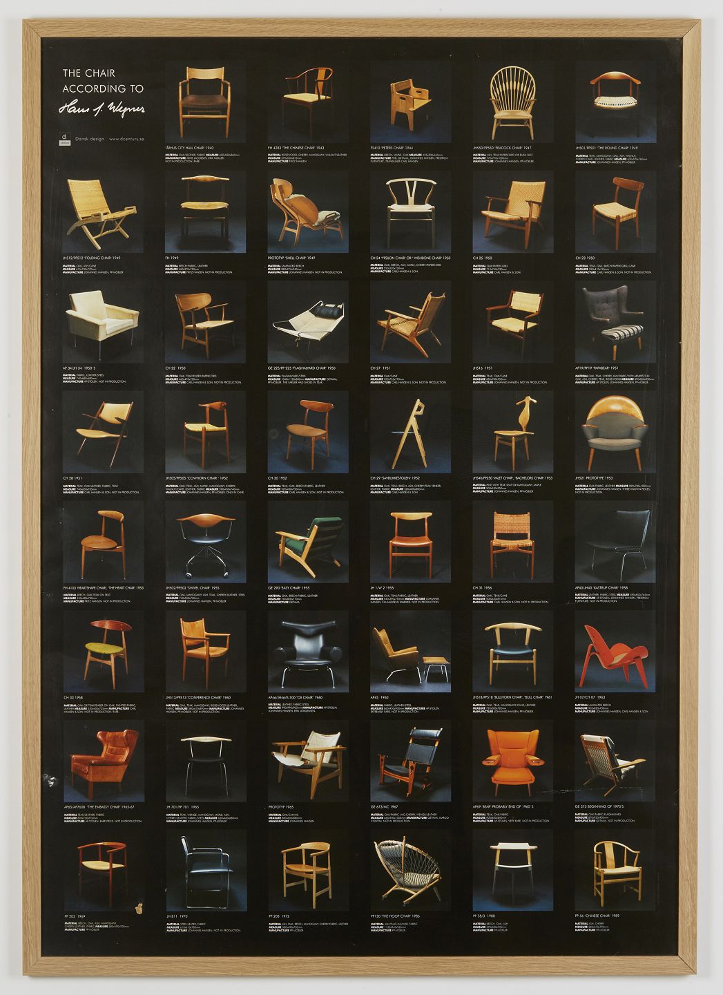 Plakat med et stort udvalg af Wegners vigtigste designs.