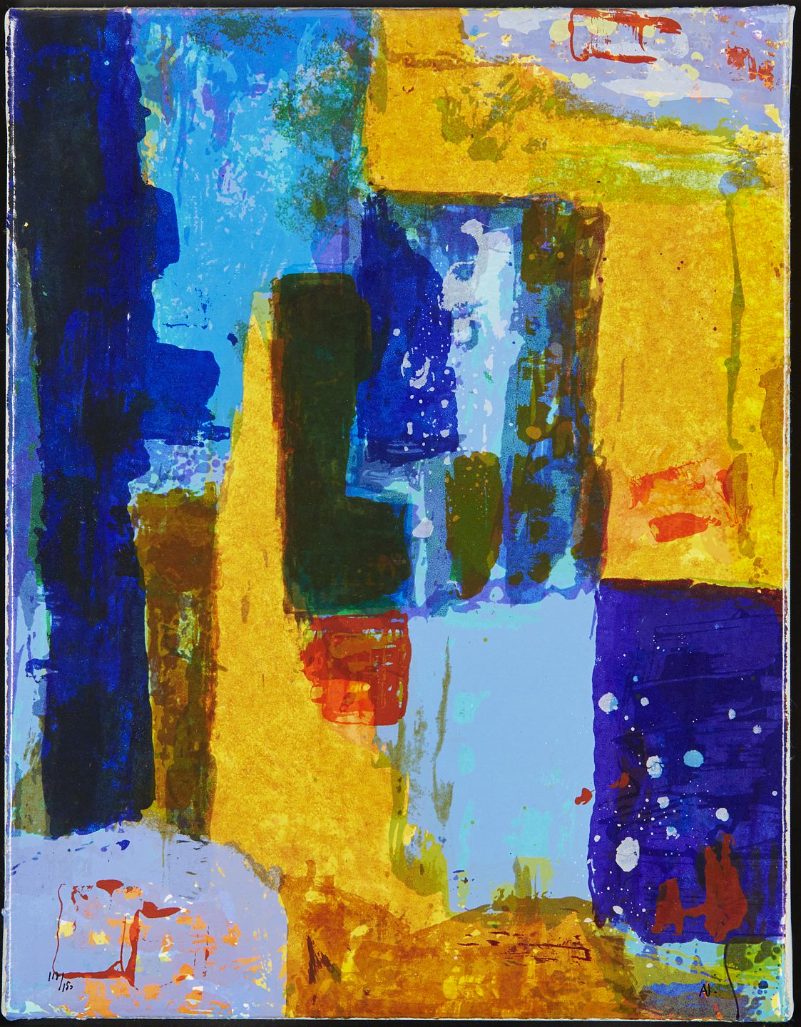 Oliestryk (en slags litografi trykt på lærred og opspændt på blændramme) udført i 150 nummererede eksemplarer