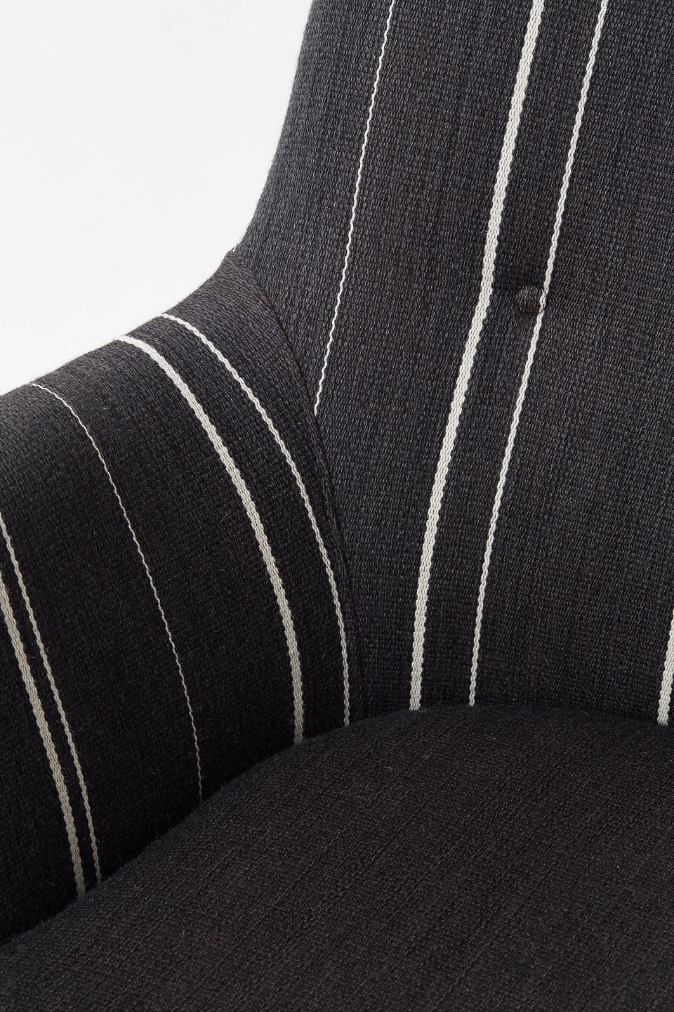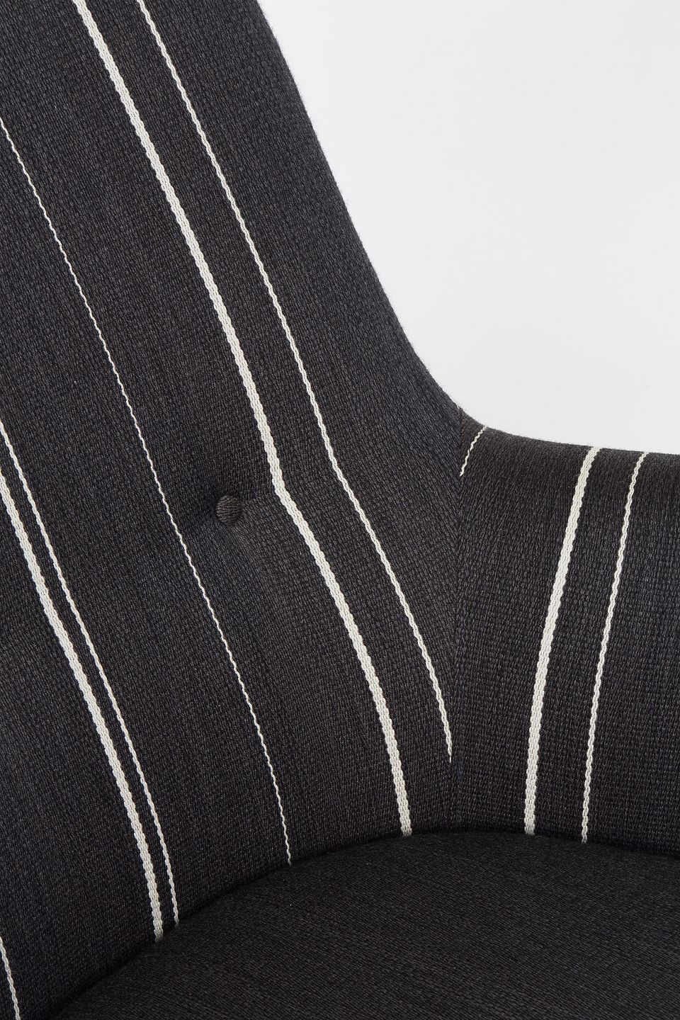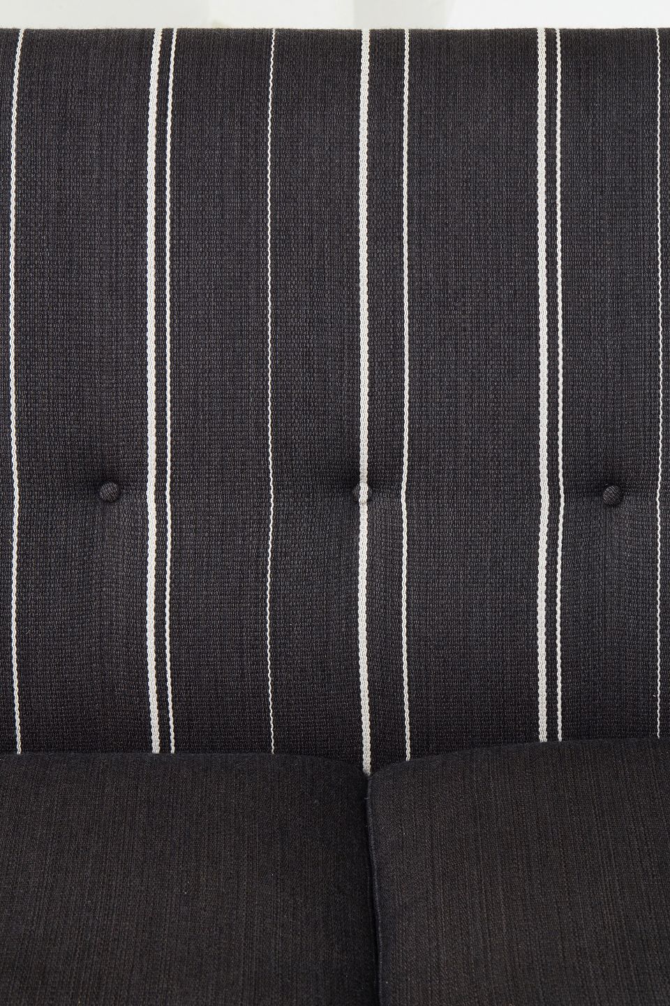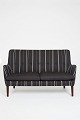 Arne Vodder. Topersoners sofa model AV53,betrukket med sort og hvidstribede savak og ben i mørkt træ.Løse sædehynder med dunfyld.