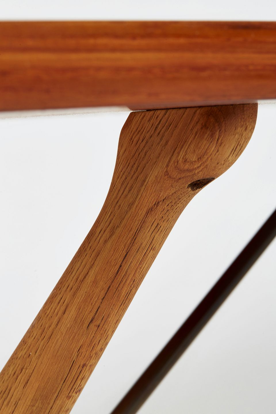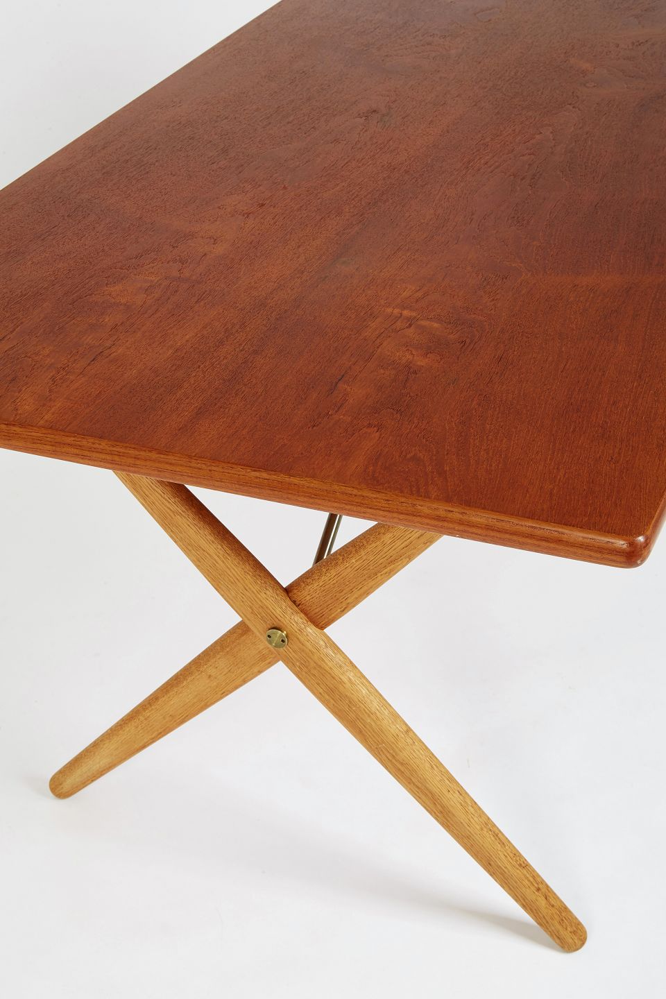 | Hans J. Wegner:AT303 spisebord af teak med krydsbensstel af egetræ. Udført hos Andreas Tuck med stempel herfra. H. 72 cm. B. 160 cm. D. 85,5 cm. Dette bord er solgt. WEGNERBORDE KØBES ! Emne nummer: M110 |