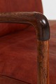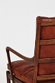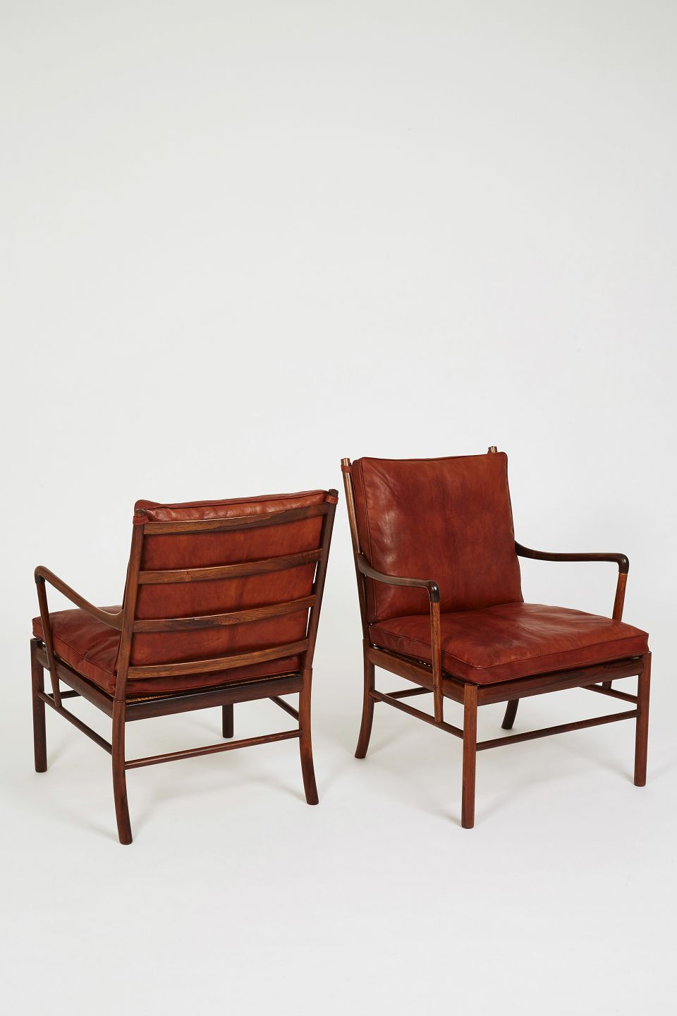 To lænestole model PJ 149 'Colonial Chair'(Kolonistol), med stel af palisander, sæde med sjeneflet, hynder betrukket med cognacfarvet patineret gedeskin.