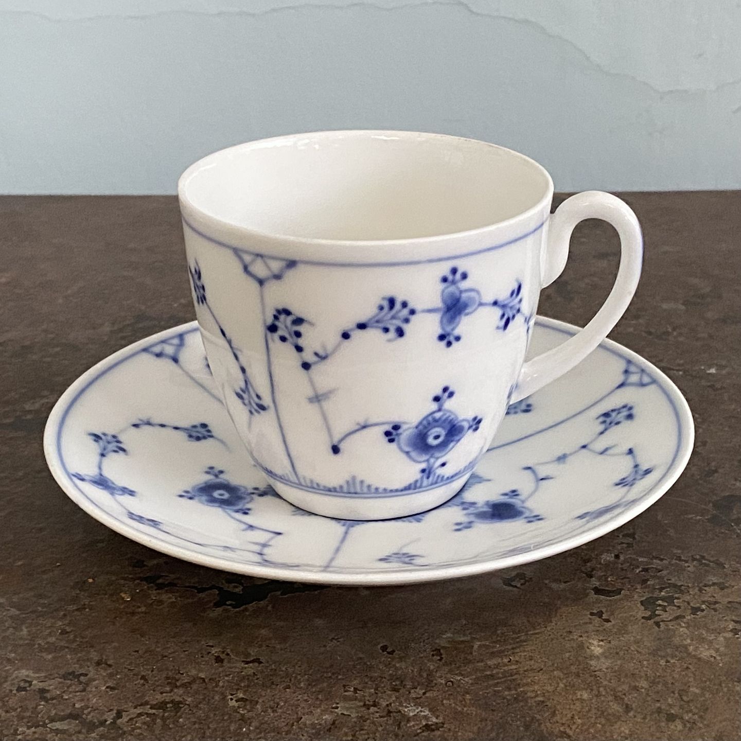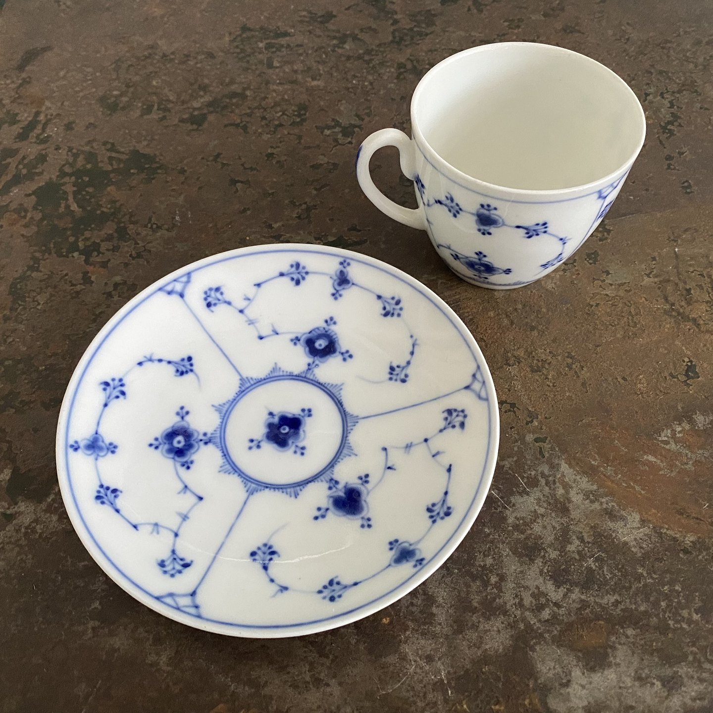Musselmalet kaffekop (glat) H. 6,7 cm. Ø 7,5 cm og underkop Ø 13,5 cm. Perfect stand. (1stk)