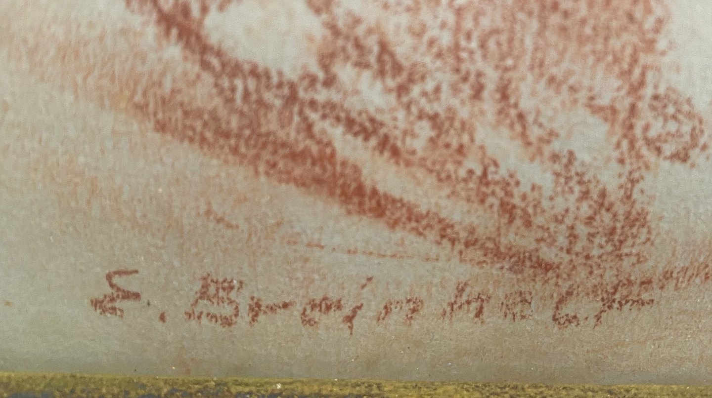 | Ejnar Breinholt (1890 - 1973). Dansk billedhugger. Oliekridt tegning på papir bag glas i gammel sort patineret træramme. Motiv af siddende nøgen kvinde. Signeret E. Breinholt. Mål: 29 x 23,5 cm Emne nummer: B601 |