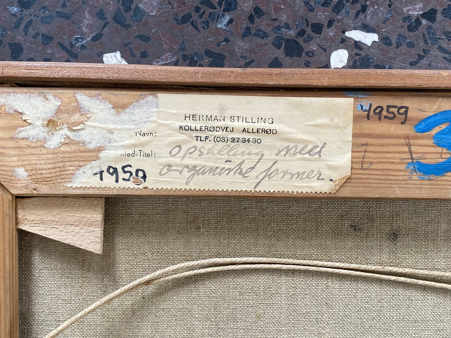 Signeret og betegnet på bagsiden: Opstilling med organiske former. 1966