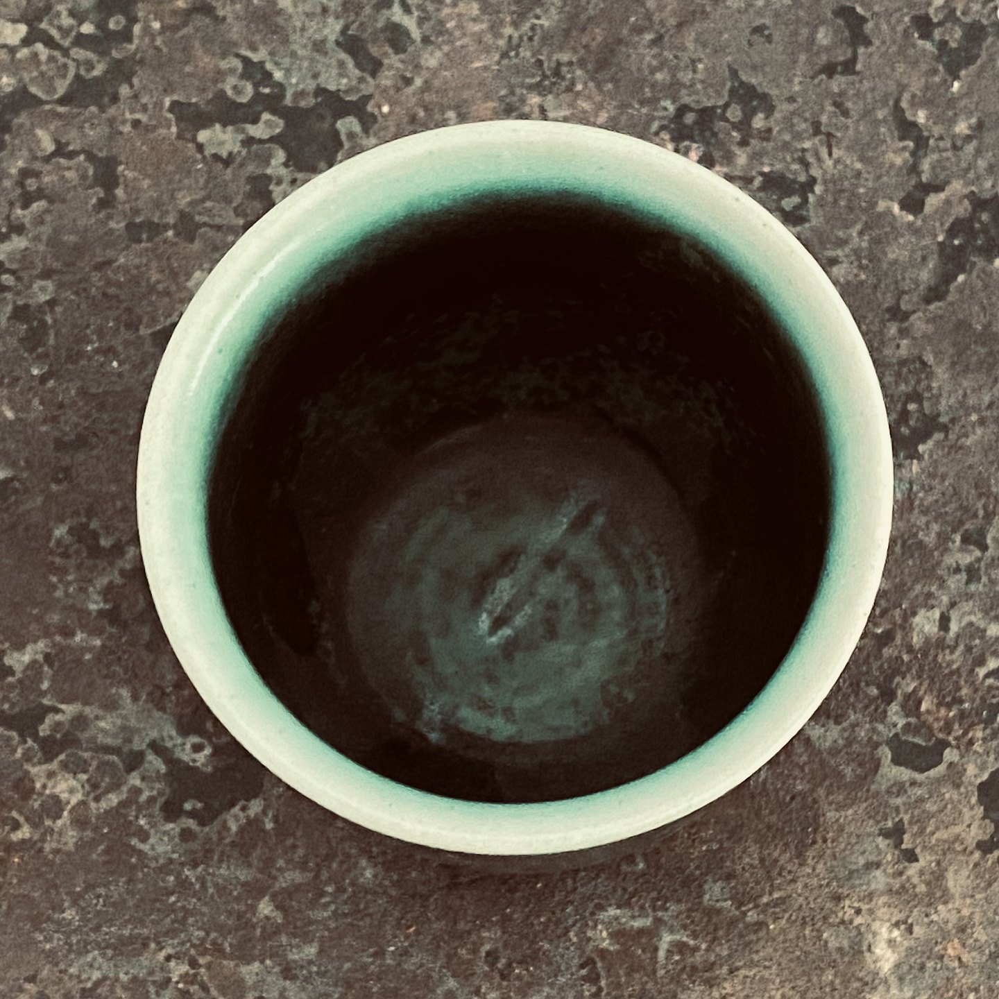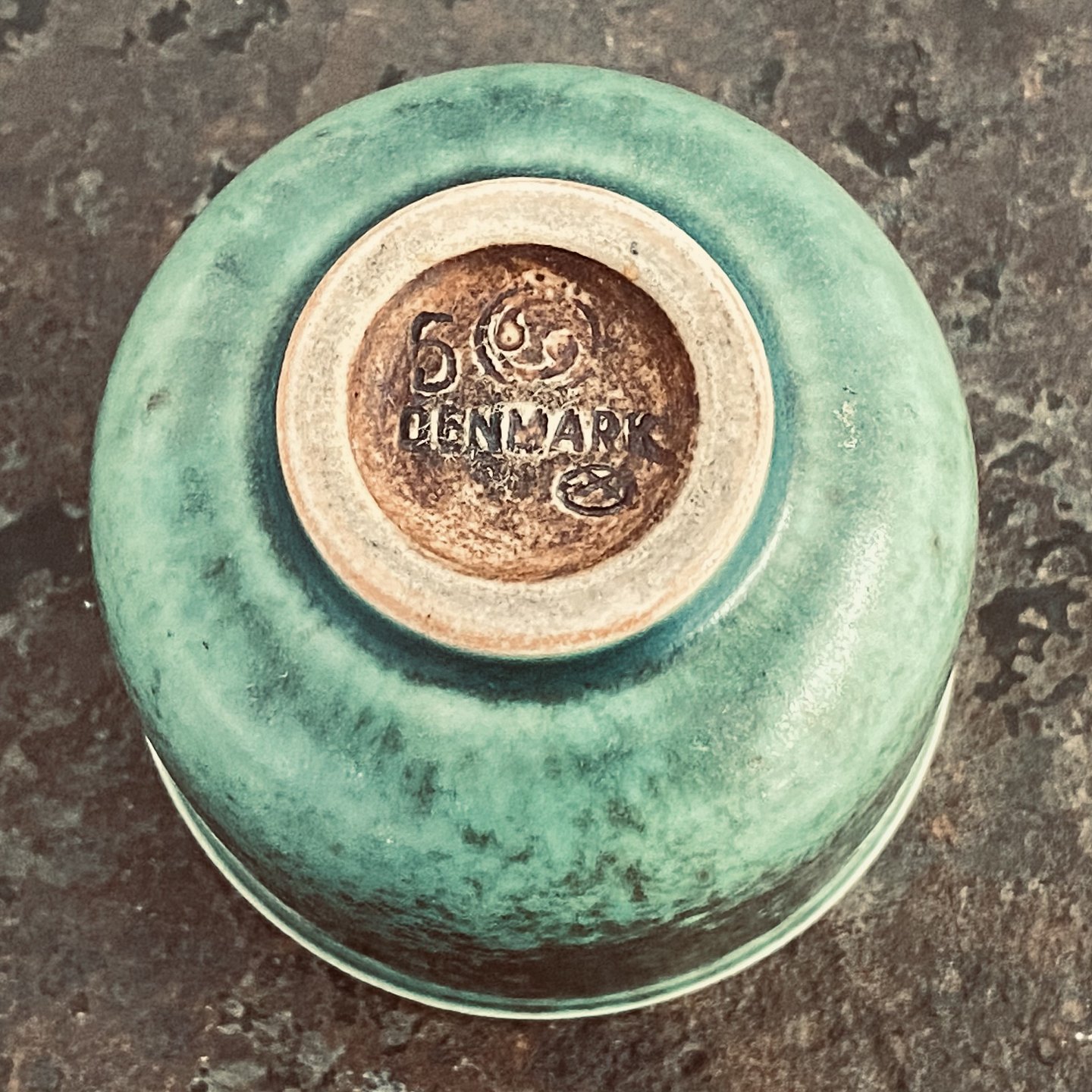 Lille Saxbo vase med grøn og koksgrå glasur.