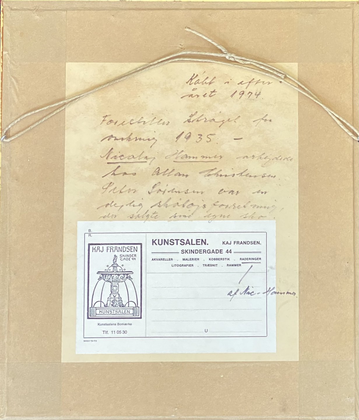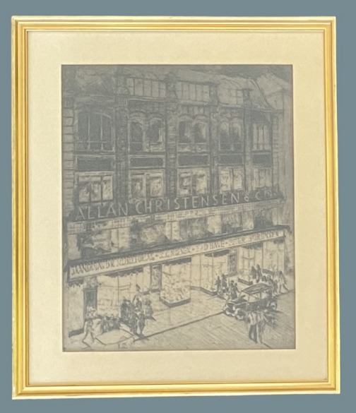 Nicolaj Hammer. Radering med motiv fra Foreningslivet på strøget ca 1935.