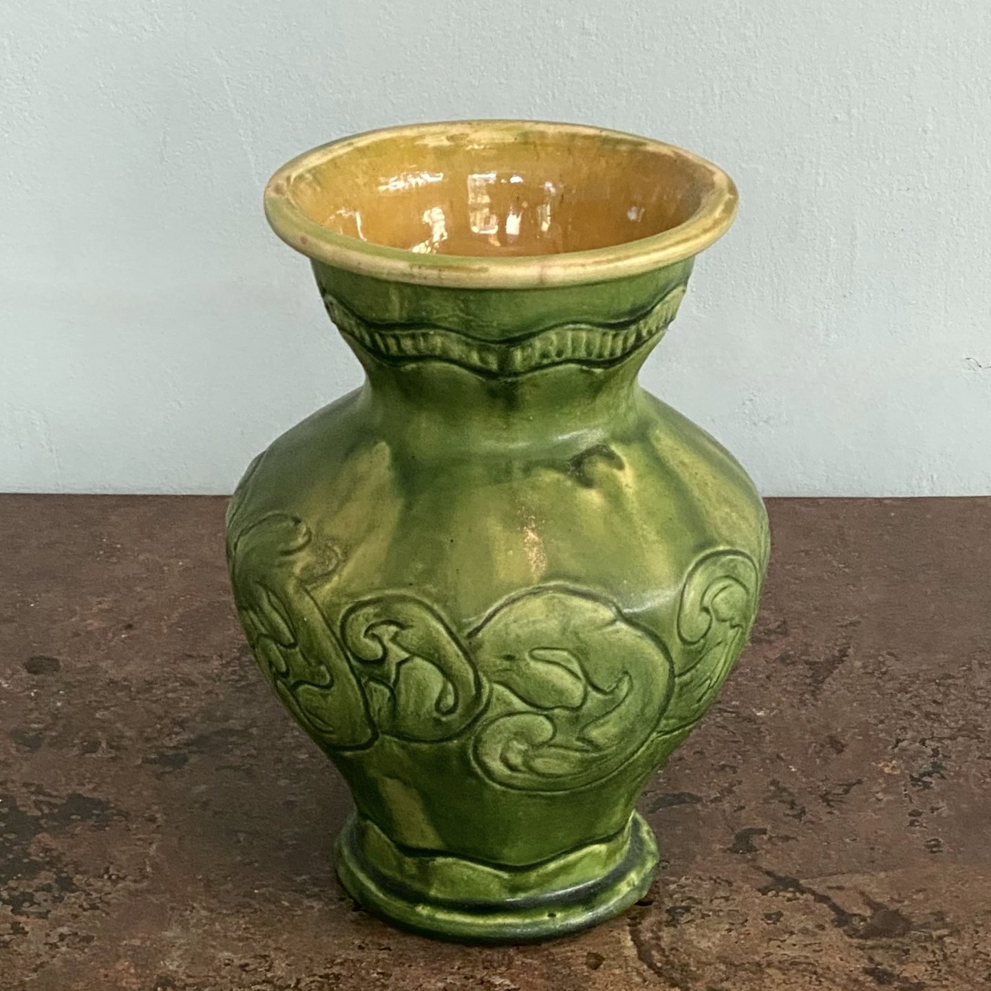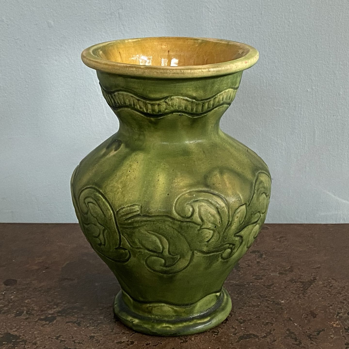 Kähler vase af grøngul glaseret keramik.