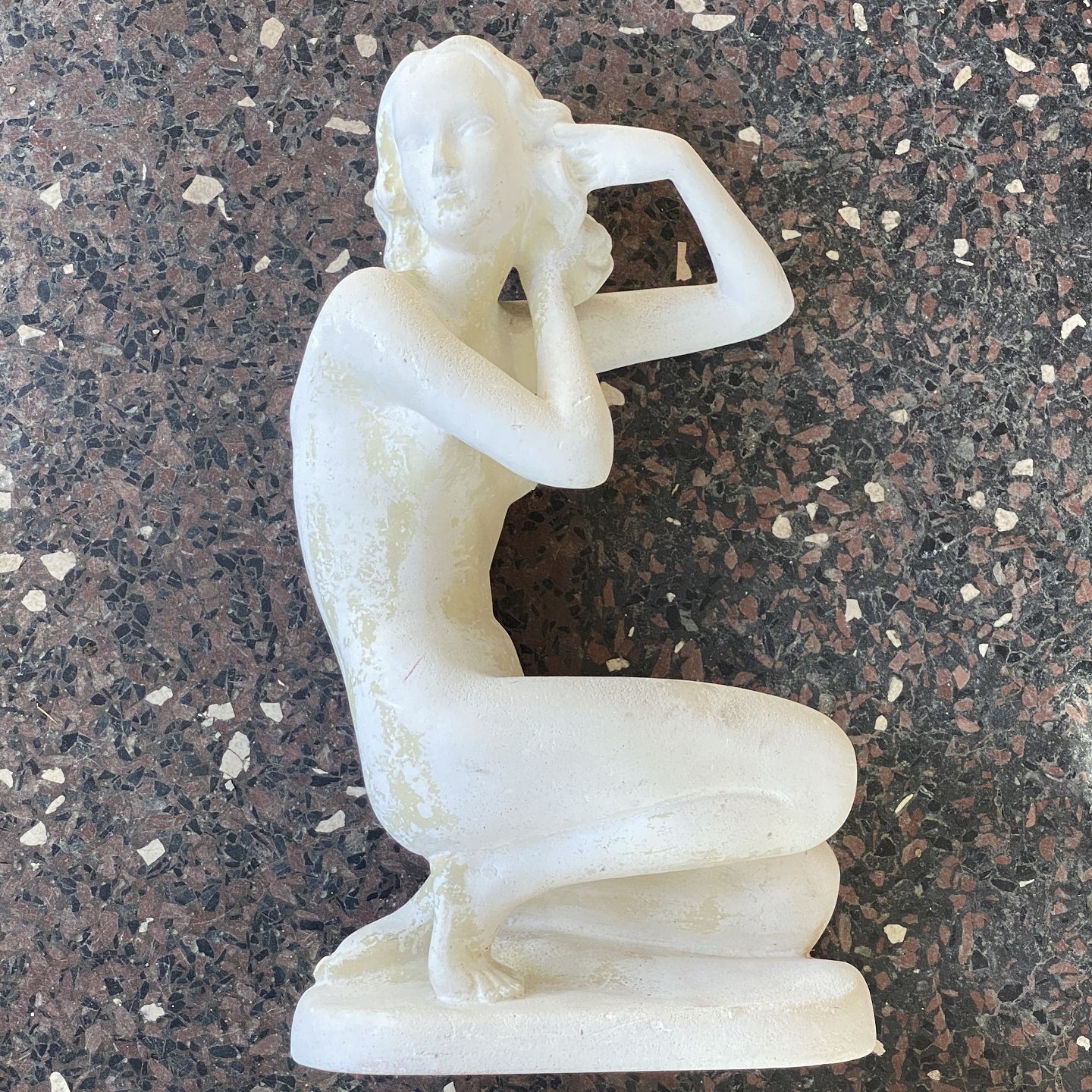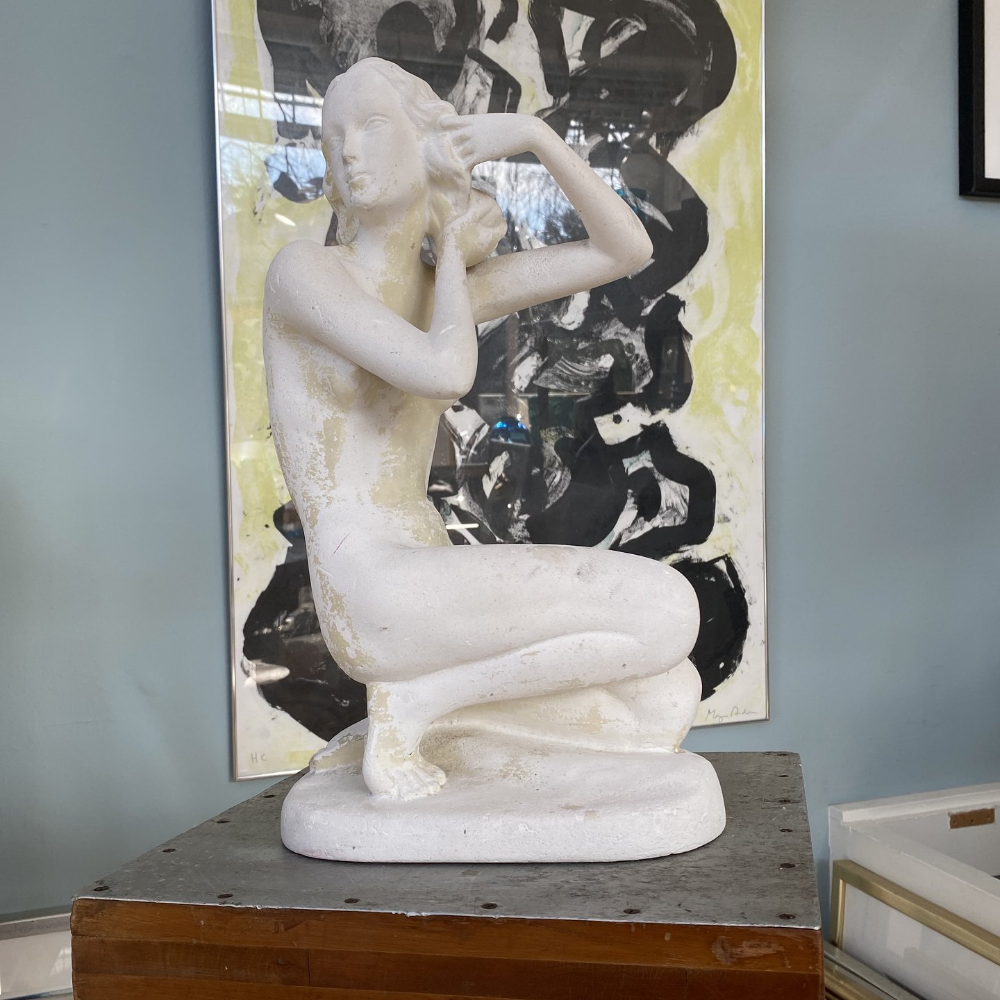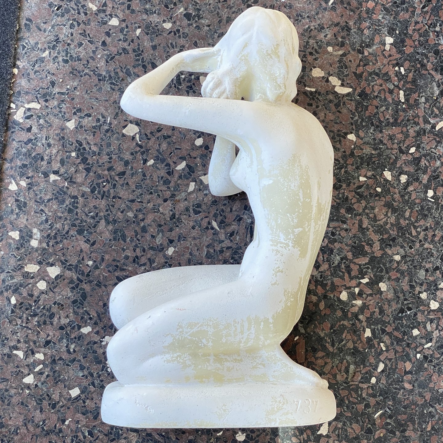 | Gammel gipsfigur i form af siddende kvinde på sokkel fra starten af 1900 tallet. Usigneret. Ca 40cm høj. Patineret, med nogle ridser og mærker, ingen afslag eller reparationer. Gamle gipsfigurer købes ! Vi køber figurer i gibs , keramik , metal og andre materialer fra det 20 århundrede. |