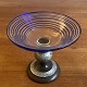 Sukkerfad af klart glas med blå omløbende spiral. ca 1860.