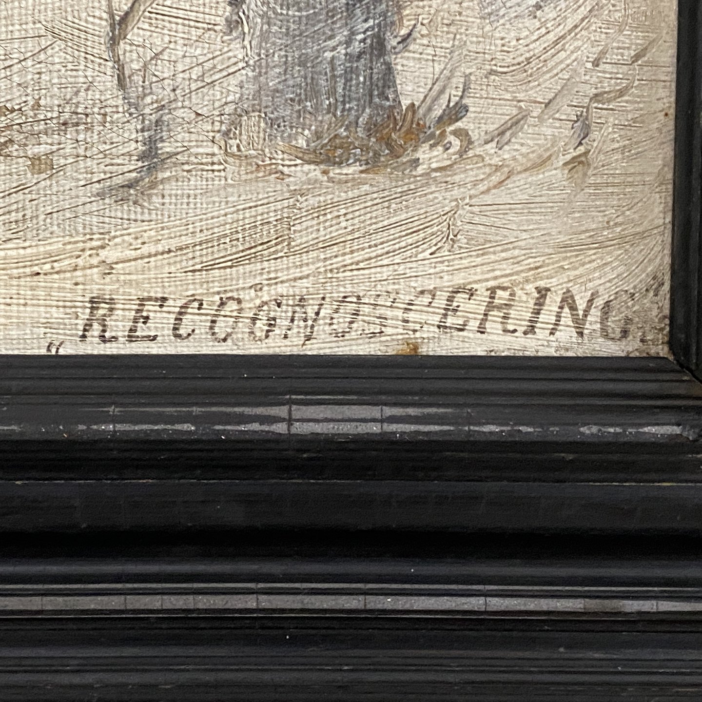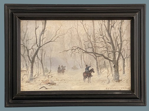 Alfred Olsen. Olie på lærred. RECIGNOSCERING, kavaleri i snelandskab. Signeret på bagsiden,. Malet af Alfred Olsen 1886.