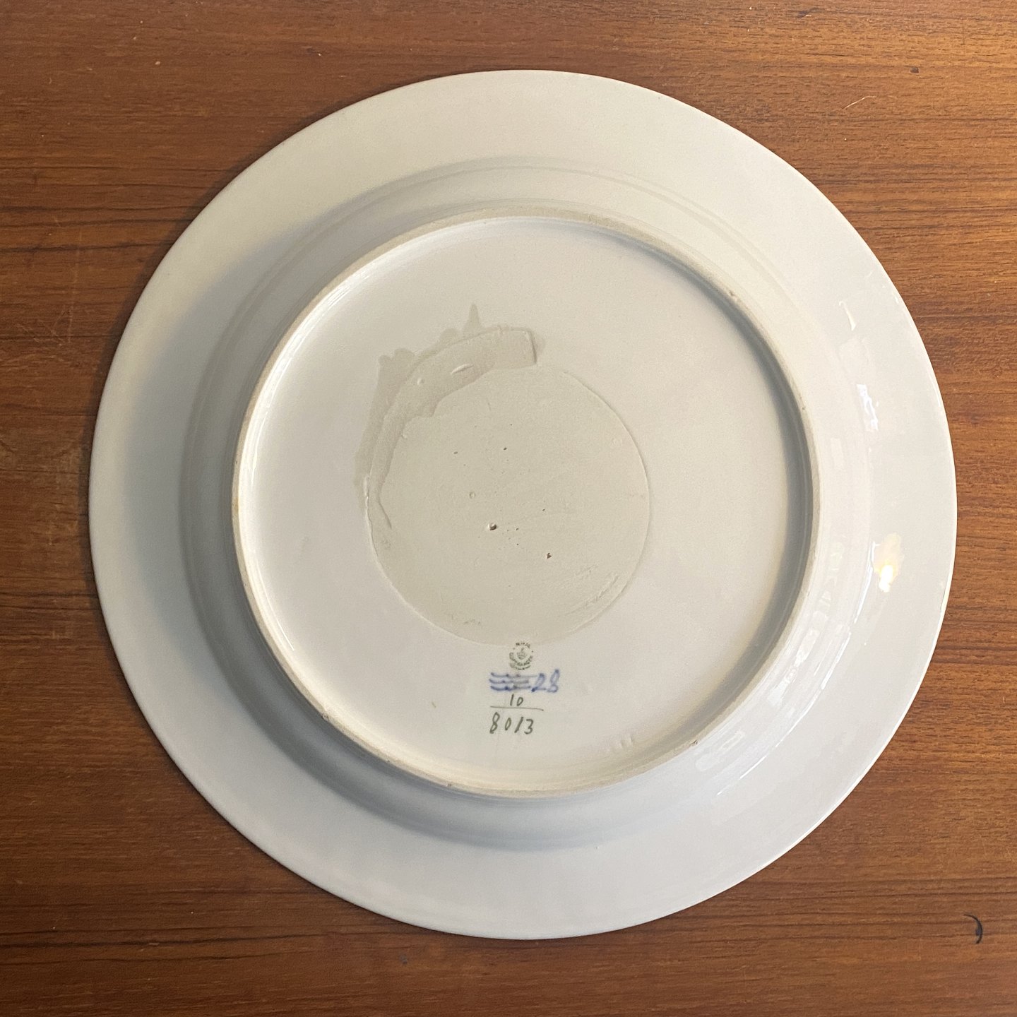 Flettet blå blomst. Stort rundt fad.