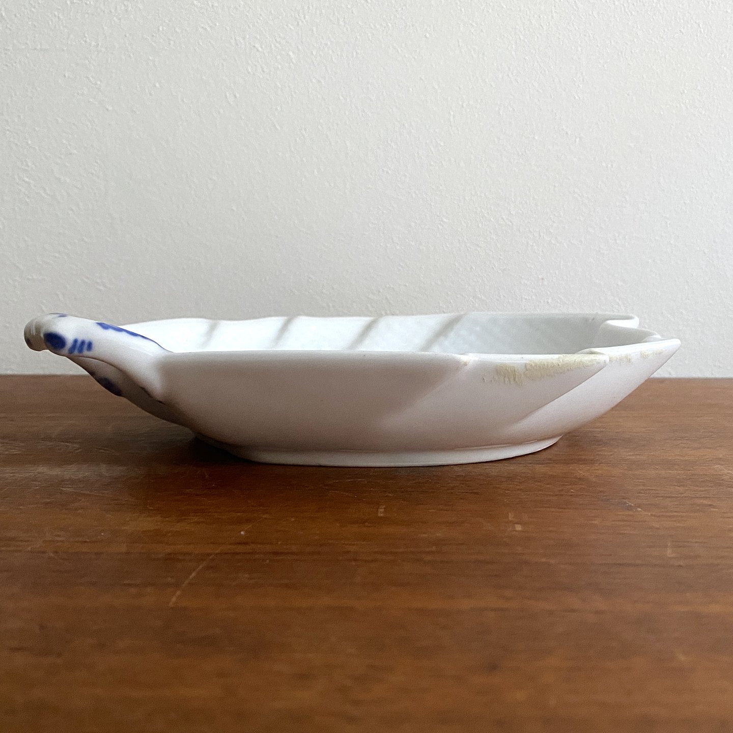 Flettet blå blomst. Bladformet fad.