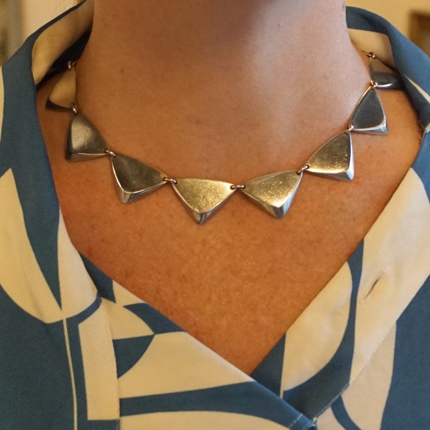 | Hans Hansen sølv smykke. Hans Hansen; Leddelt halskæde af sterling sølv. Dessin nr. 319. L. 38 cm. Stemplet "Hans Hansen 925S Denmark 319". Lavet hos Hans Hansen, Kolding, Danmark. Dansk design smykke. Kontakt os gerne, hvis du søger noget specifikt. Hvad du ser på vores hjemmeside, er blot et udvalg af det, som vi har. |