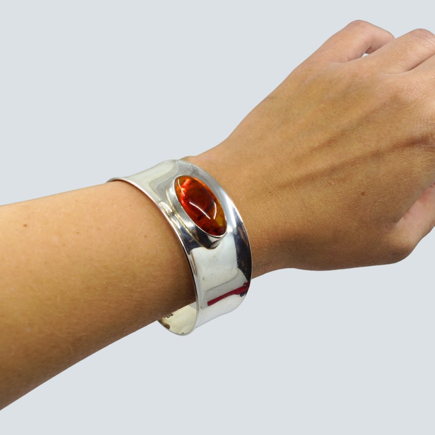 N. E. From; Armring af sterling sølv, prydet med rav.