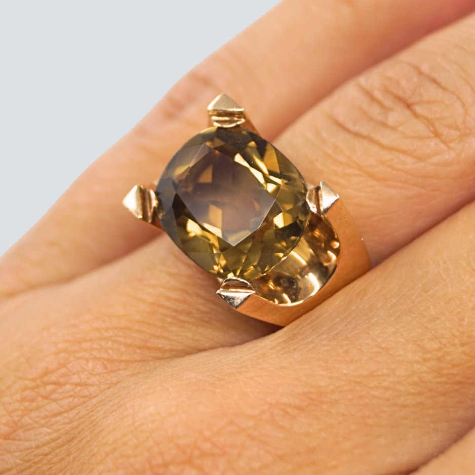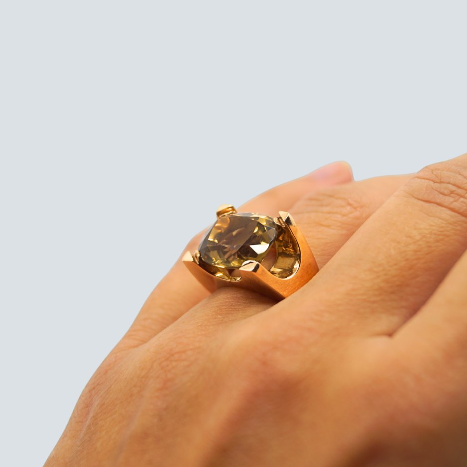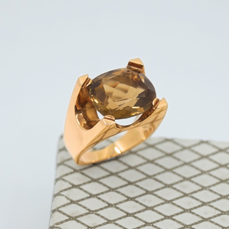 Just Andersen; Ring i 14 kt. guld, prydet med en stor topas.