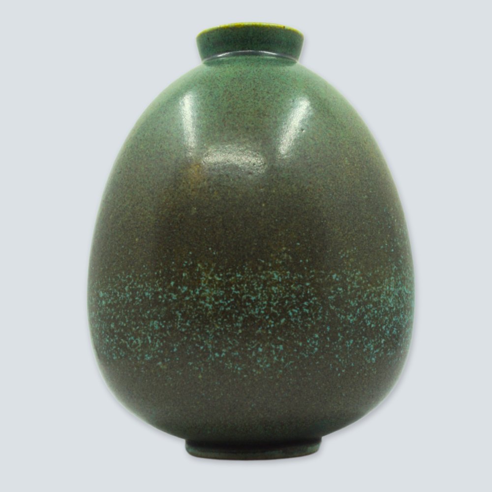 Eva Stæhr-Nielsen for Saxbo; Vase af stentøj dekoreret i en blå-brunlig glasur #287.
