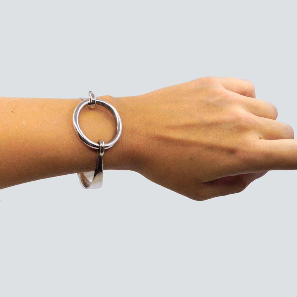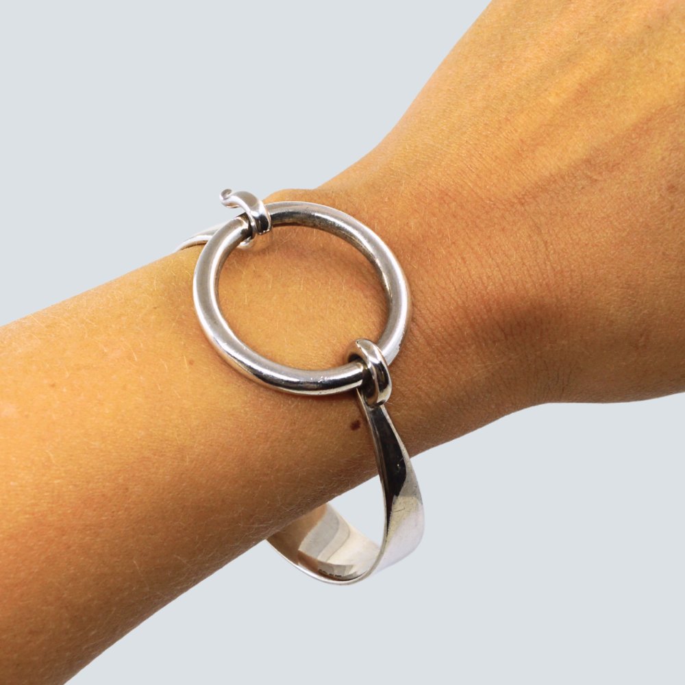 | Hans Hansen sølv smykke. Hans Hansen; Armring af sterling sølv. Med cirkel formet lås foran. Dia. indvendig ca. 6,3 cm. Stemplet "Hans Hansen 925S Denmark". Hans Hansen, Kolding, Danmark. Dansk design smykke. Kontakt os gerne, hvis du søger noget specifikt. Hvad du ser på vores hjemmeside, er blot et udvalg af det, som vi har. |