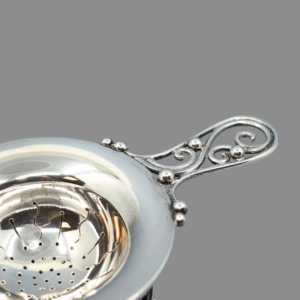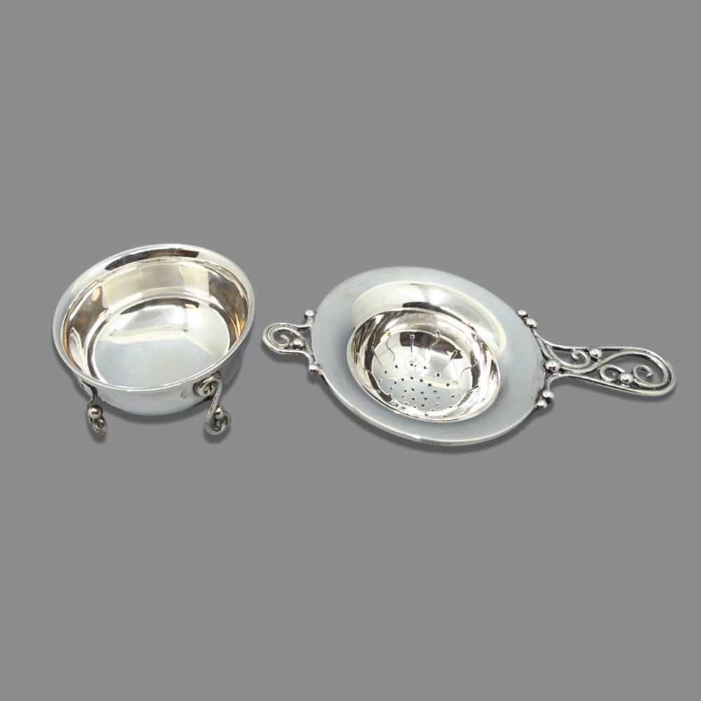 Dansk thesi med underskål, begge i sterling sølv. L. 14 cm. B. 7,7 cm.